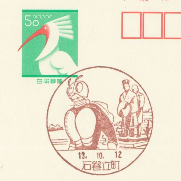 風景印☆初日☆宮城・石巻立町・H13.10.12・下面ライダー