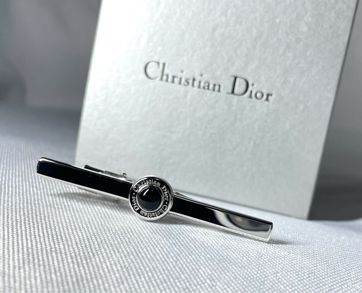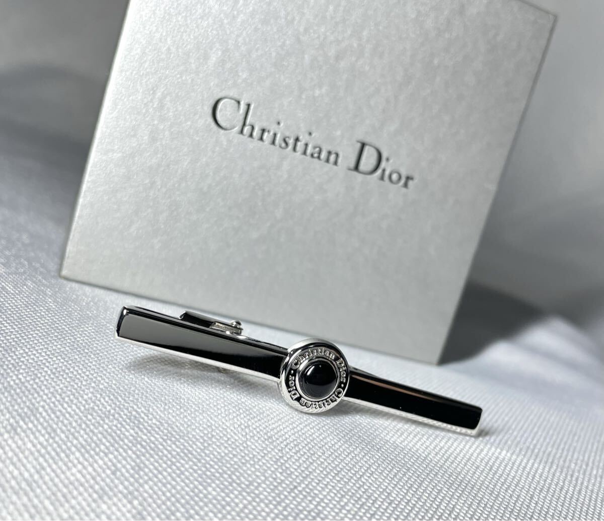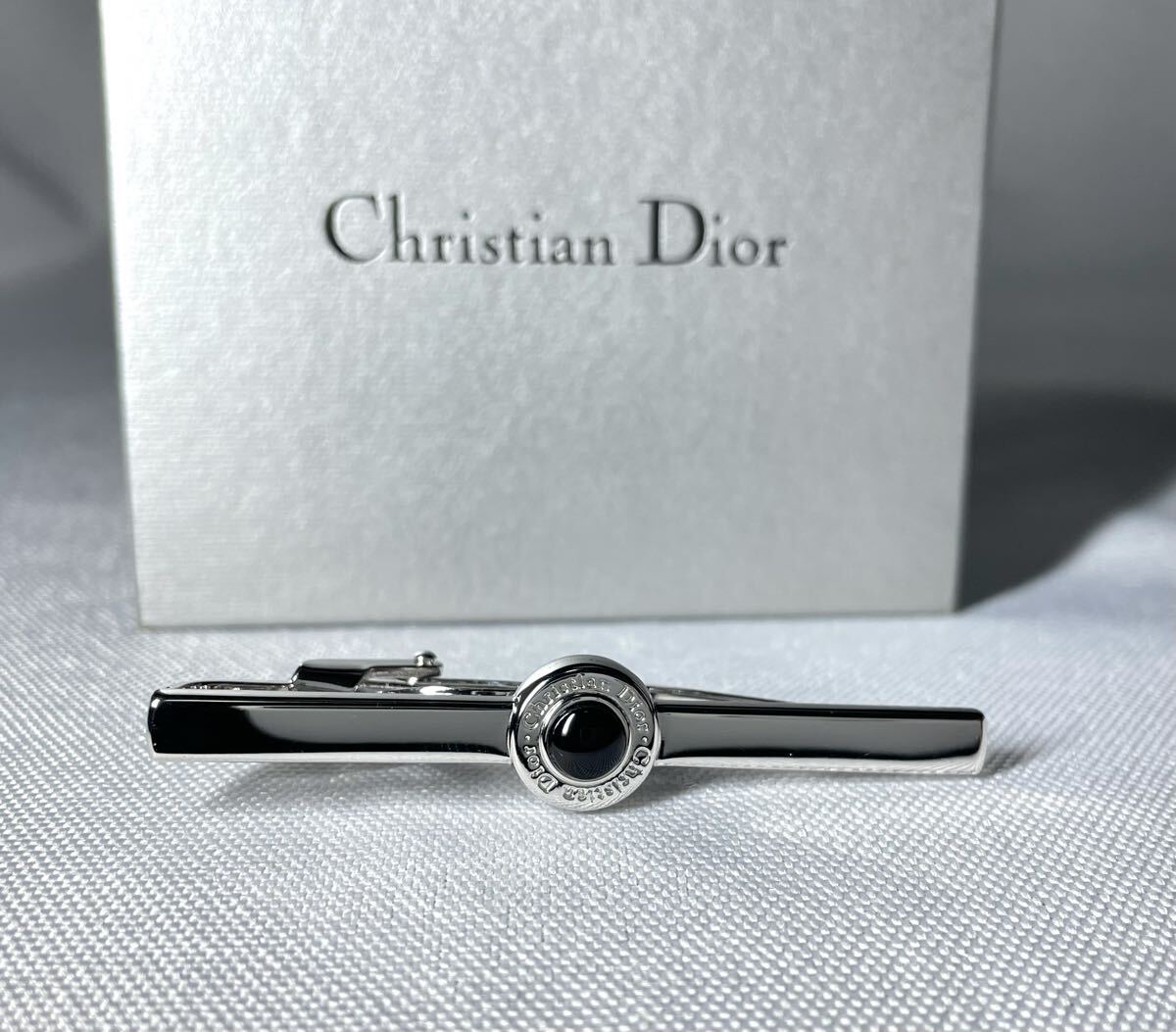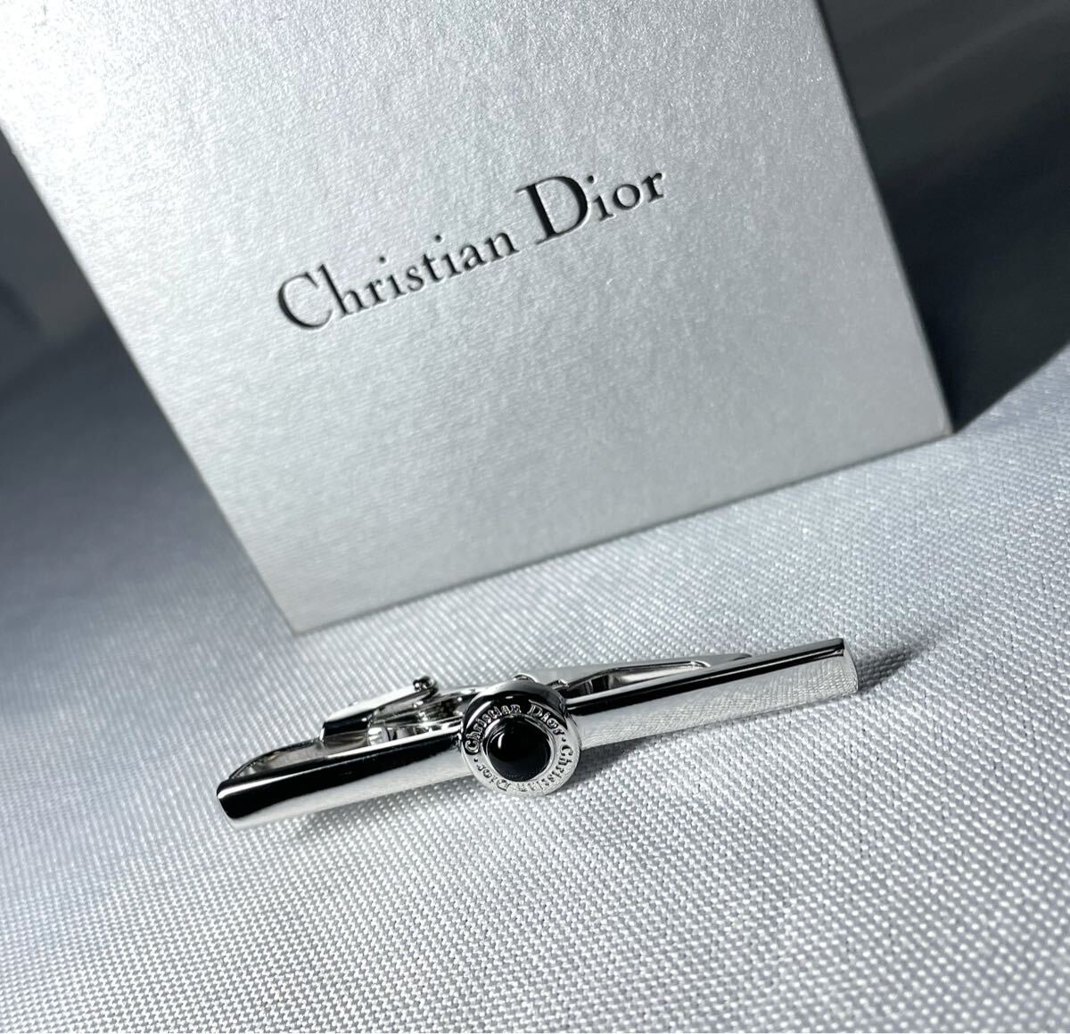 即決美品 Dior Homme ディオールオム ブラックストーン装飾ブランドロゴ文字 ネクタイピン タイピン タイバー クロームメタリックシルバー