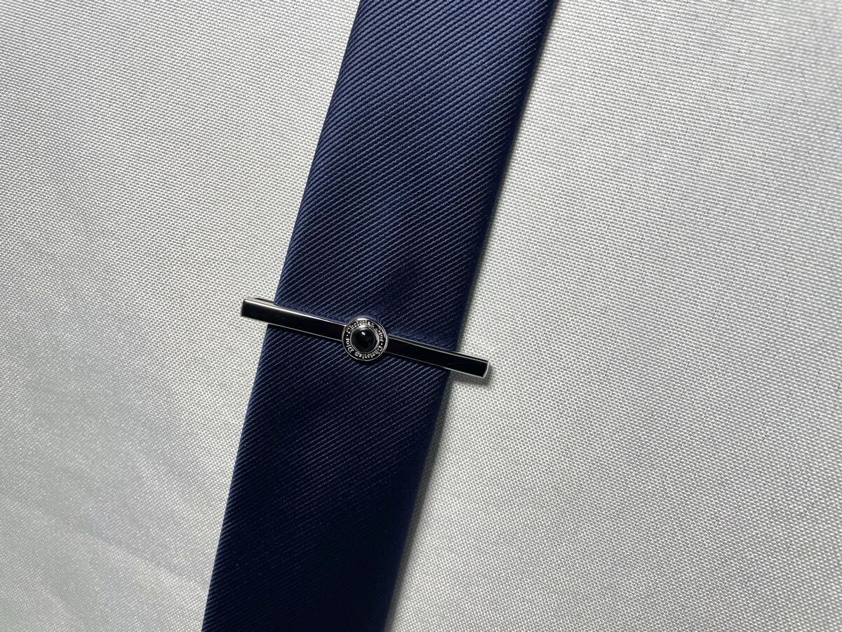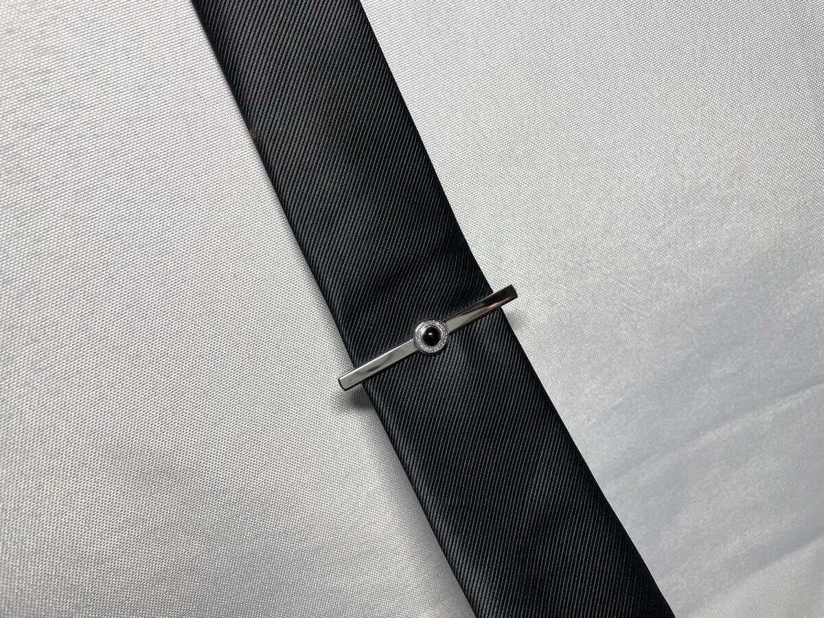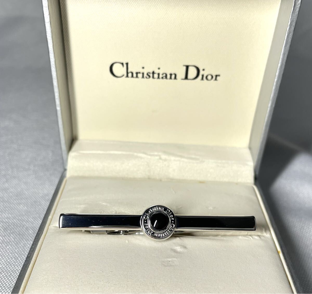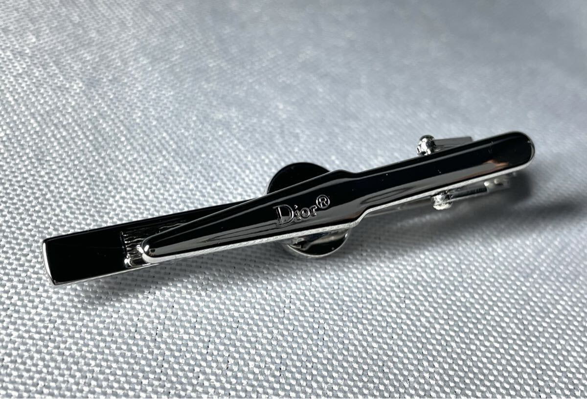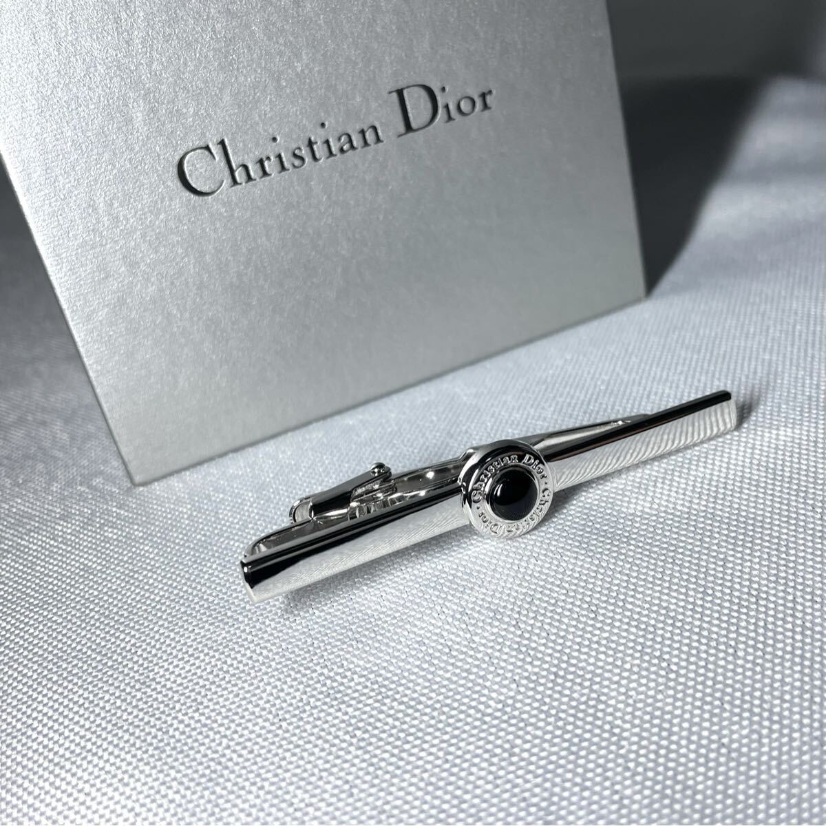 即決美品 Dior Homme ディオールオム ブラックストーン装飾ブランドロゴ文字 ネクタイピン タイピン タイバー クロームメタリックシルバー