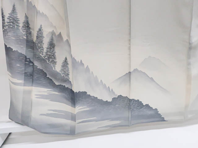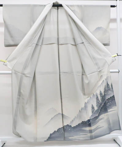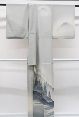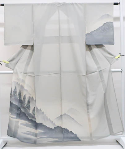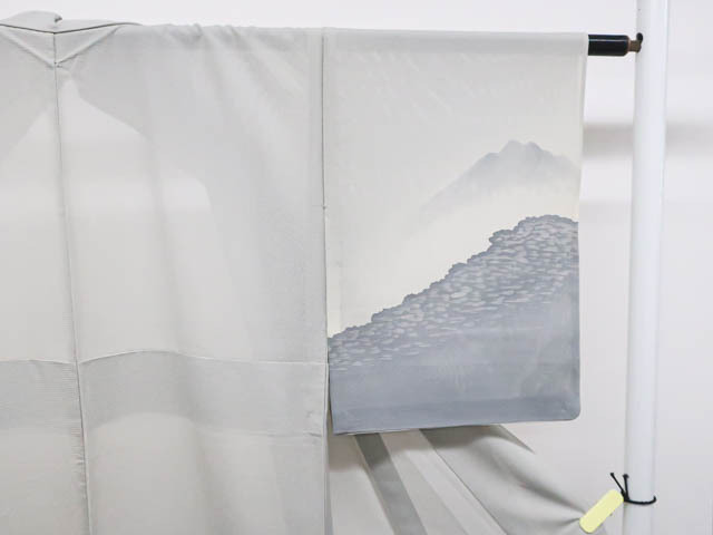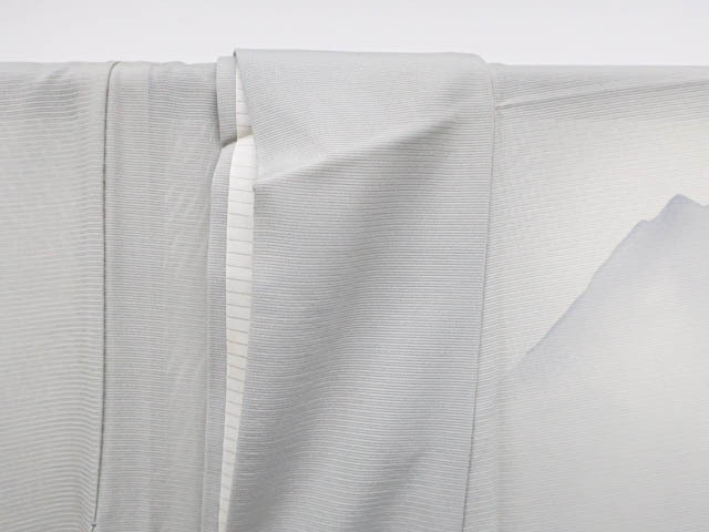 リサイクル商品のため、薄ヤケがございます。 左胸付近・衿に薄汚れがございますが着用可能なお品です。 地色は薄灰です。 1枚目の画像が近いお色かと思われます。 素材は正絹です。 |