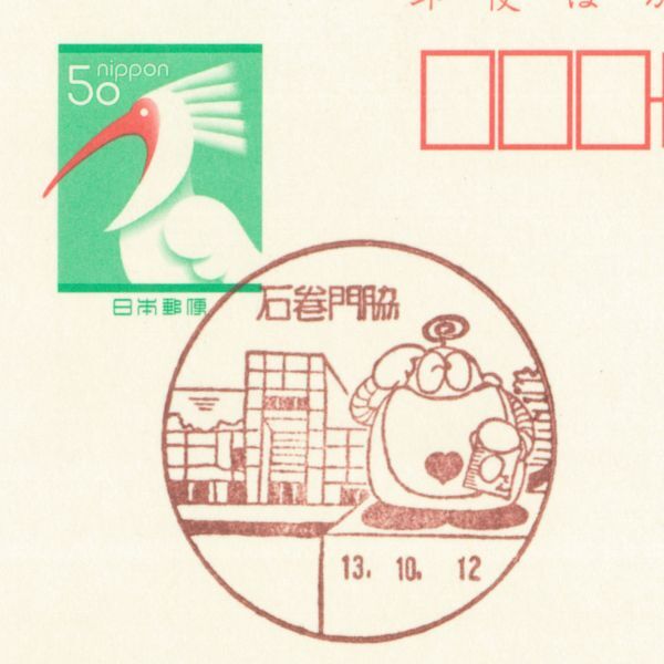 風景印☆初日☆宮城・石巻門脇・H13.10.12・ロボコン