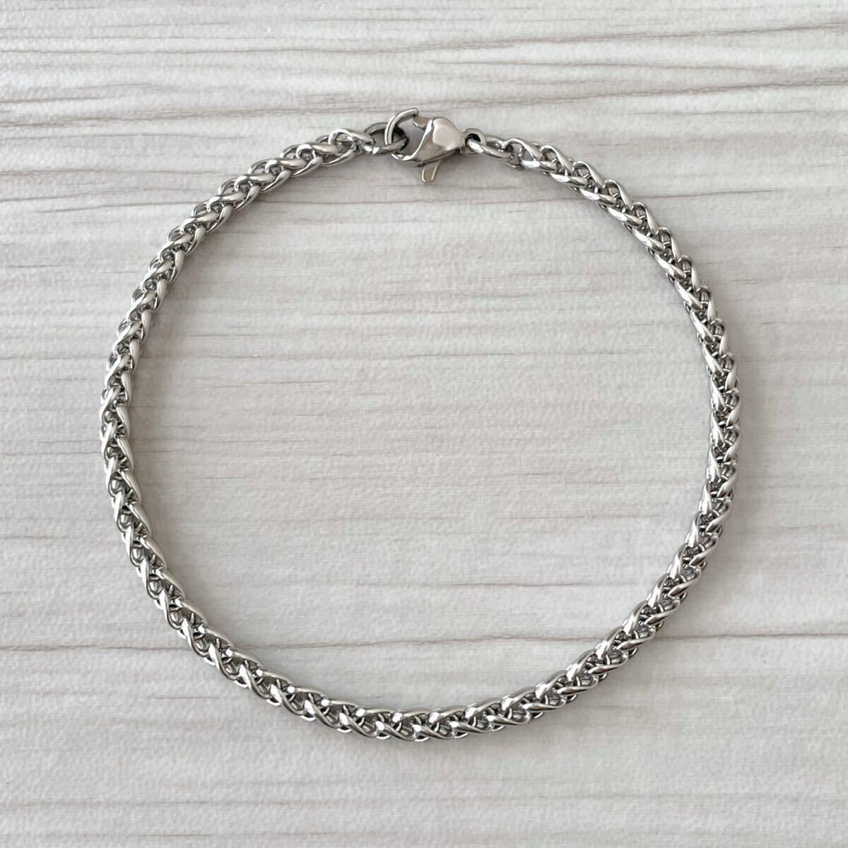 #ステンレスブレスレット #ステンレスアンクレット #ステンレスチェーン #金属アレルギー対応 #サージカルステンレス316L #サージカルステンレス #ユニセックスアクセサリー #男女兼用 #編み込みチェーン #竜骨チェーン