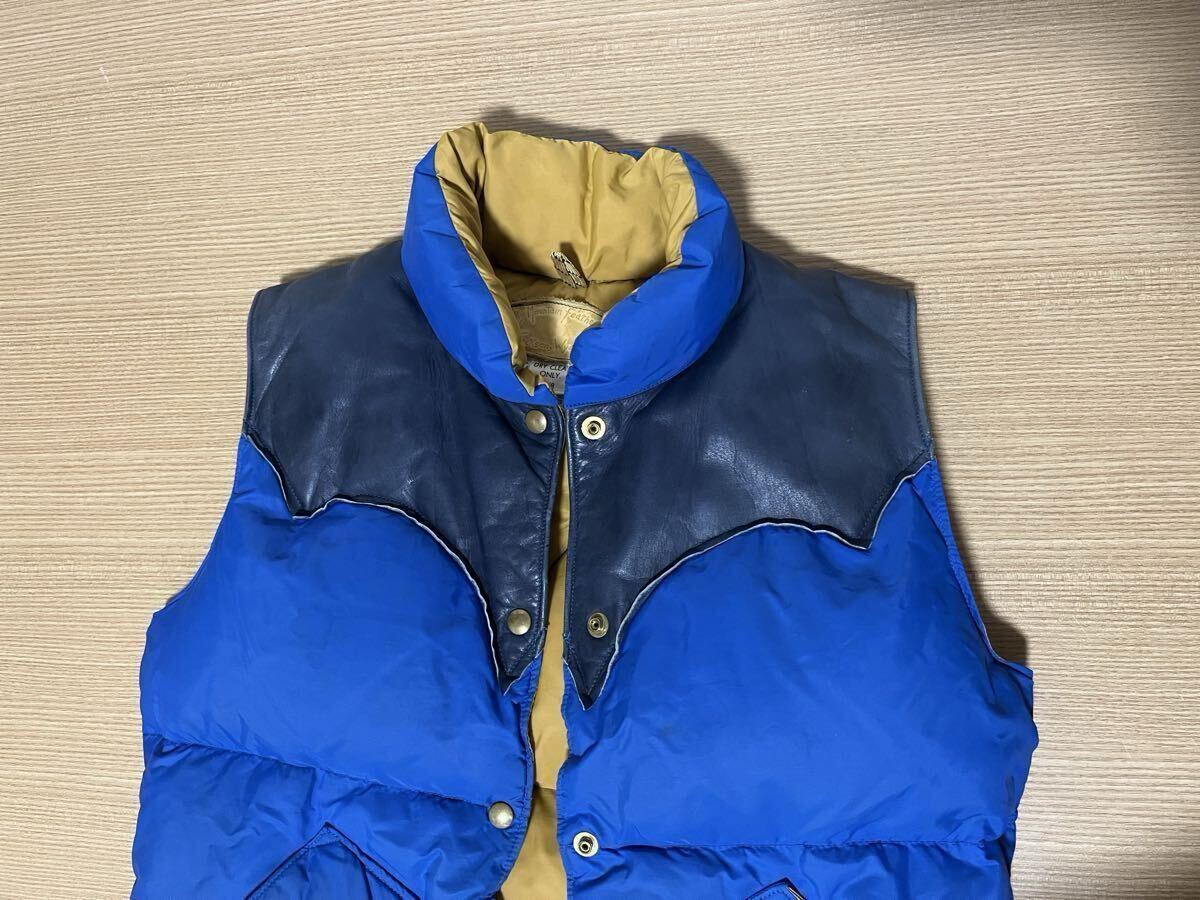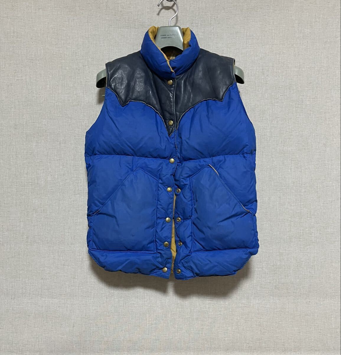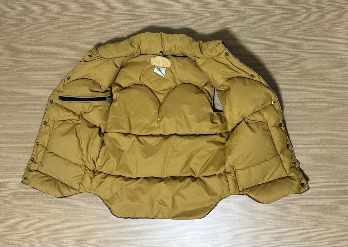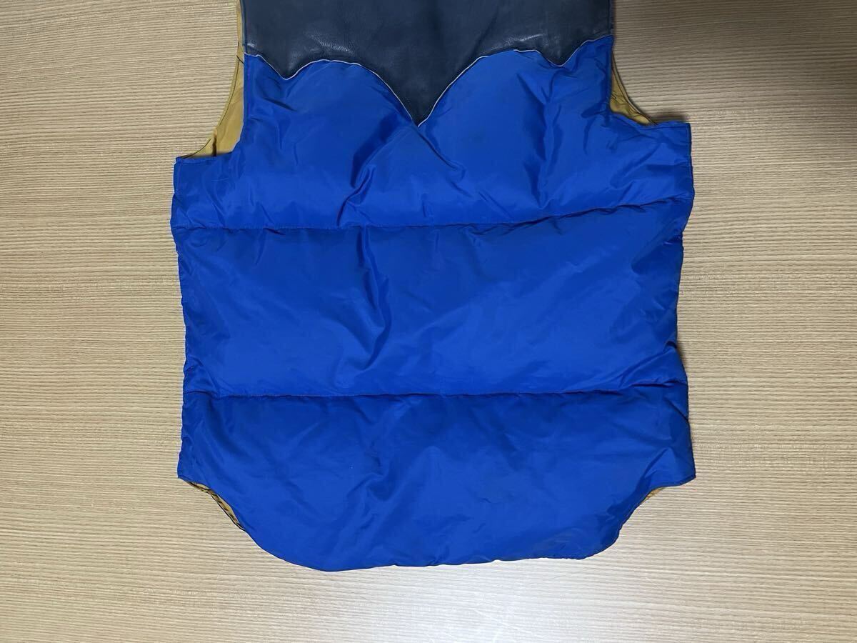 ■■■■■■■■■■■■■■■■■■■■■■■■■■■■■■■■■■■■■■■■■ ■70s ビンテージ ロッキーマウンテン レザーヨークダウンベスト オリジナル vintage 希少! 70s オリジナル ビンテージ ロッキーマウンテン ■MADE IN USA ■カラー ブルー/ネイビー/イエロー ■サイズ 7/8 平置き計測サイズ ・肩幅約37cm ・身幅約49cm(脇下計測) ・着丈約60cm(背面計測) ■状態 ・長期自宅保管品です。 ・ビンテージ品の為、擦れ、薄い汚れなどあります。 ・特に目立つ破れなど無く良好状態と思います ・レザー部分は柔軟性あり良好状態と思います ・不快な異臭などは特に感じません。 ・念の為、画像で状態確認お願いします。 ・自宅保管品にご理解のない方は入札をお控え下さい。 | |||