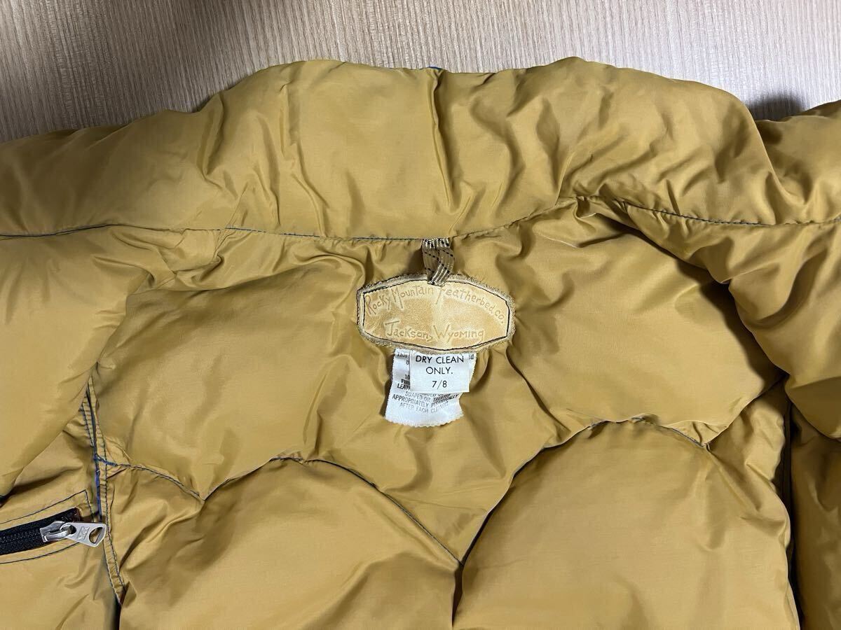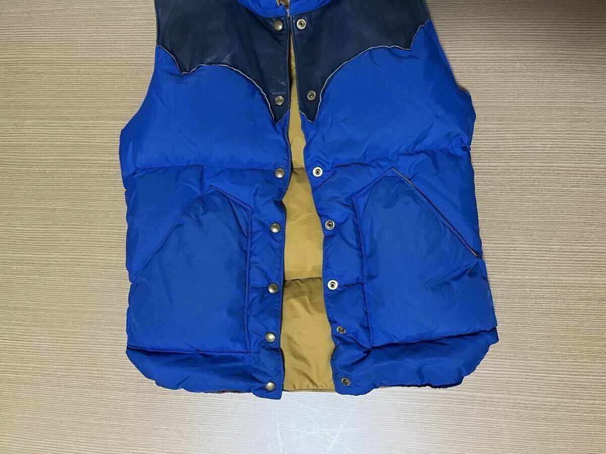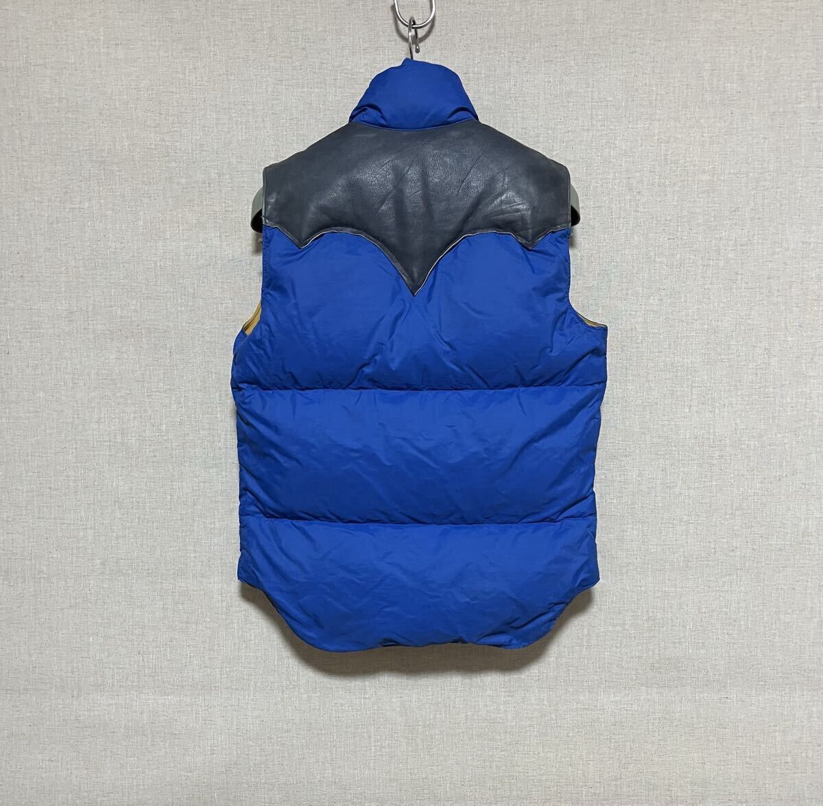 ■■■■■■■■■■■■■■■■■■■■■■■■■■■■■■■■■■■■■■■■■ ■70s ビンテージ ロッキーマウンテン レザーヨークダウンベスト オリジナル vintage 希少! 70s オリジナル ビンテージ ロッキーマウンテン ■MADE IN USA ■カラー ブルー/ネイビー/イエロー ■サイズ 7/8 平置き計測サイズ ・肩幅約37cm ・身幅約49cm(脇下計測) ・着丈約60cm(背面計測) ■状態 ・長期自宅保管品です。 ・ビンテージ品の為、擦れ、薄い汚れなどあります。 ・特に目立つ破れなど無く良好状態と思います ・レザー部分は柔軟性あり良好状態と思います ・不快な異臭などは特に感じません。 ・念の為、画像で状態確認お願いします。 ・自宅保管品にご理解のない方は入札をお控え下さい。 | |||
