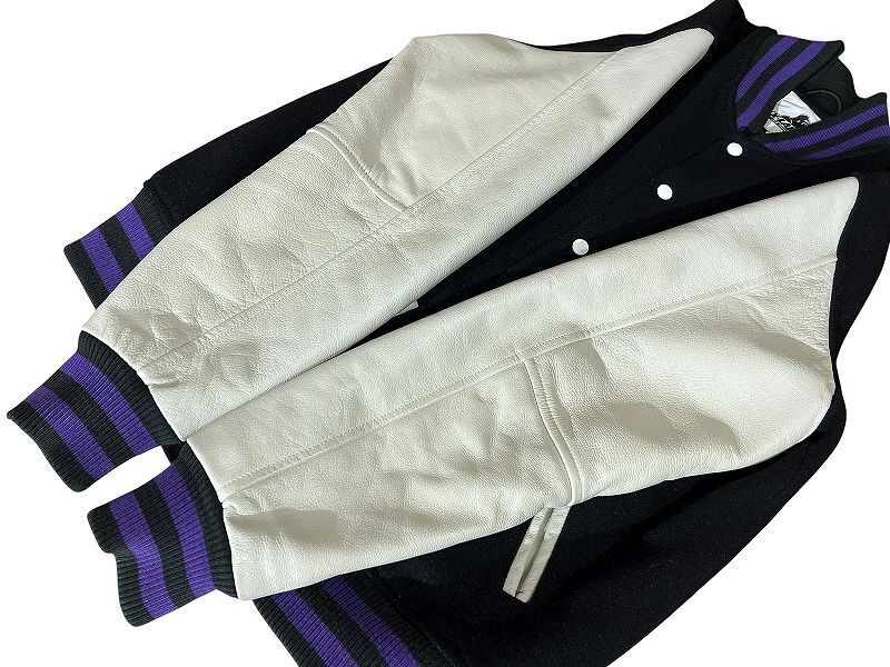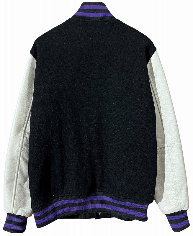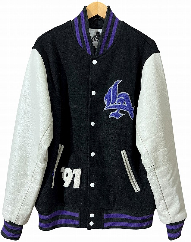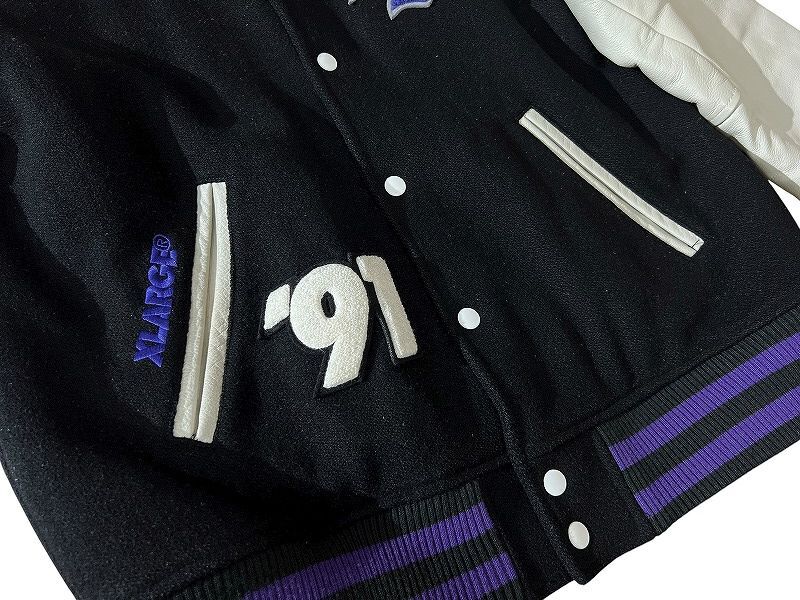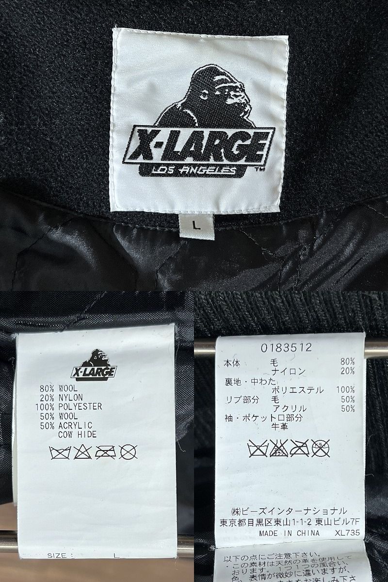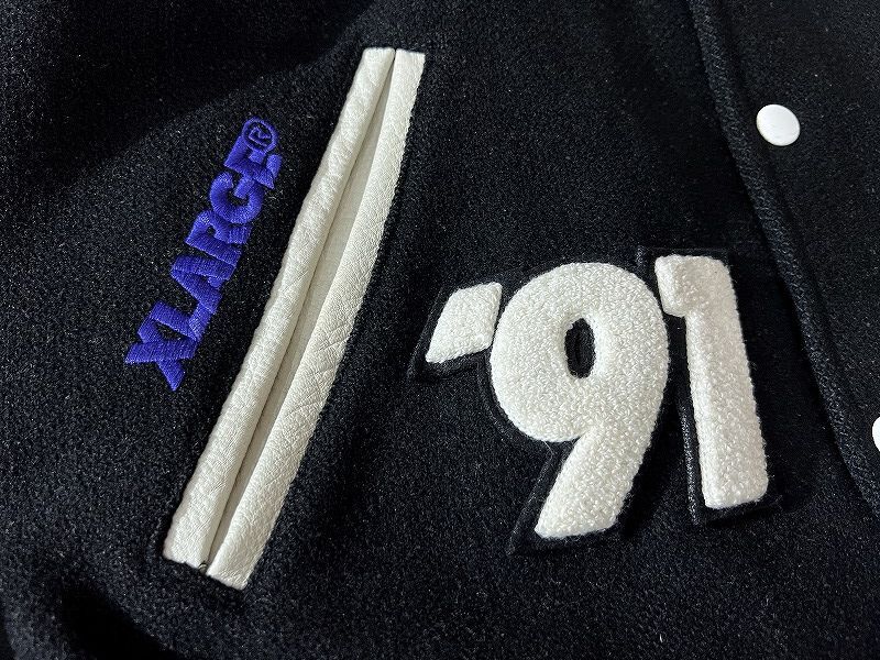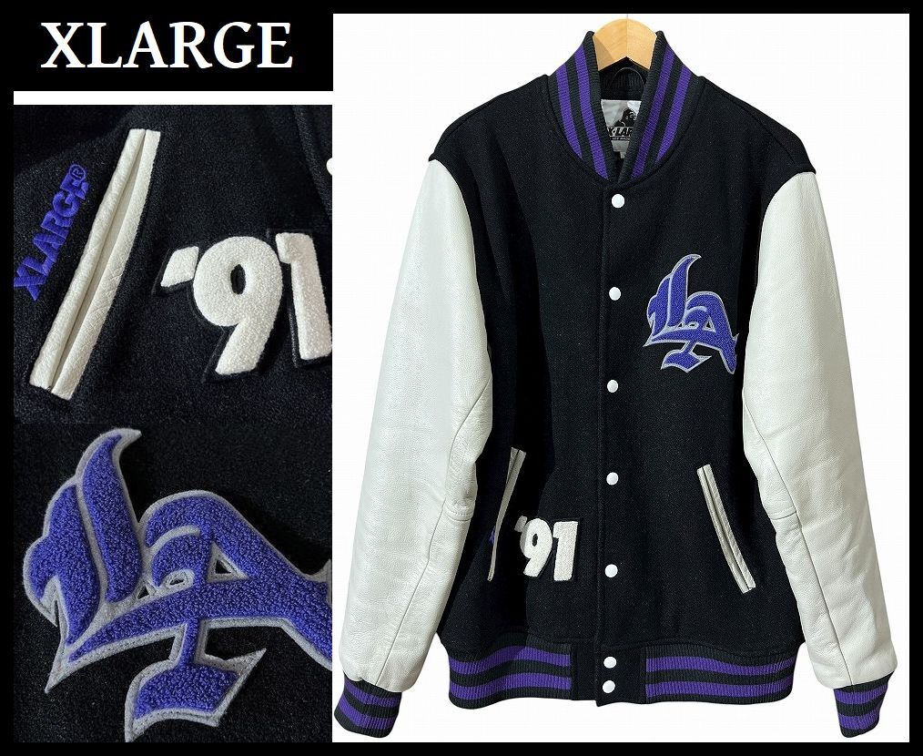 送料無料 XLARGE エクストララージ LAロゴ '91 サガラ 刺繍 ワッペン 装飾 中綿入り 袖革 メルトン スタジャン スタジアム ジャケット 黒 L