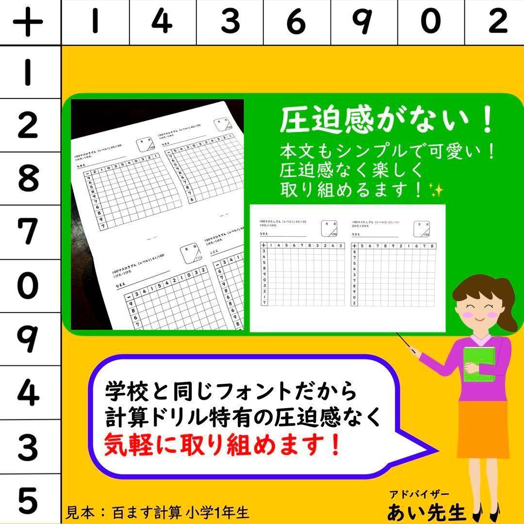 2年生のうちにクリアしておきたい掛け算や繰り上がりのある足し算、繰り下がりのある引き算を100ます計算でしっかりサポートします!(^^)