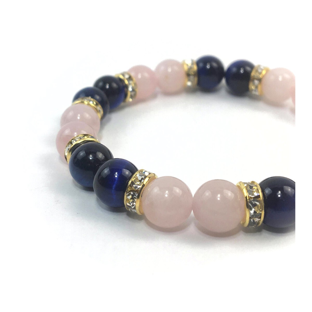 ローズクォーツ&ブルータイガーアイ パワーストーン ブレスレット 8mm 天然石ブレス ゴールド / 浄化 美・愛 恋愛運 レディース ピンク