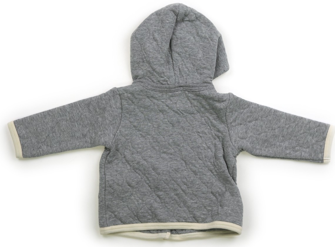 キルティング生地。フードの取り外しが可能です。ブランドタグが汚れています。いくつかのシミが見られ、毛羽立ち・洗いざらし感があります。