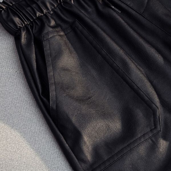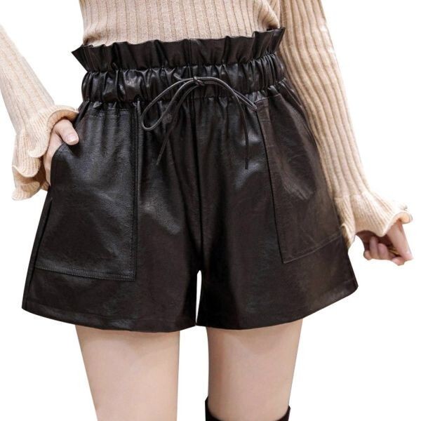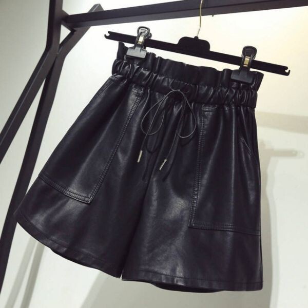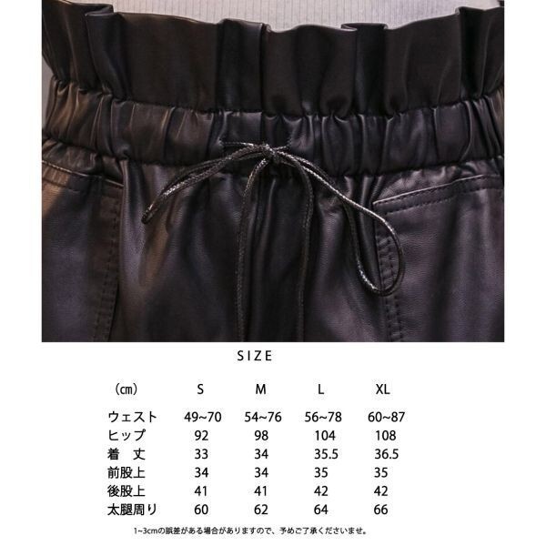 ショートパンツ PUレザー ポケット付き ウェストゴム 黒 フェイク革 ブラック フェイクレザー フレア 女性 Mサイズ