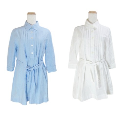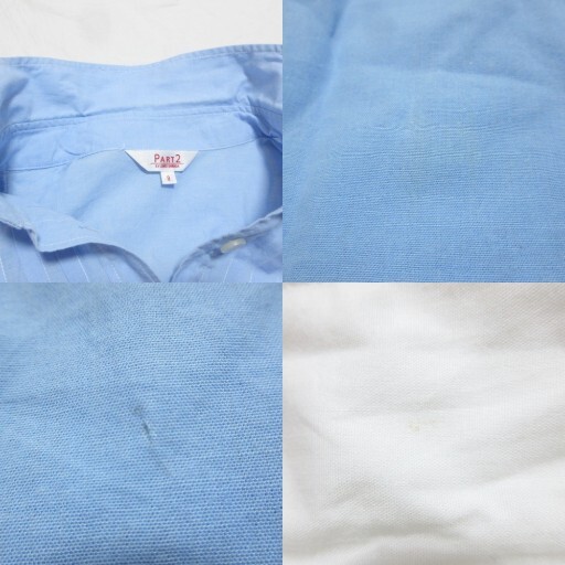 【状態】・青色のシャツの衿回りに薄い黄ばみ、右肩に5mm程度の薄い汚れ、正面裾に2cm程度の薄いシミ ・白色のシャツの衿回りに薄い黄ばみ、衿後ろに5mm程度の薄い汚れ その他に目立ったダメージはなく、問題なくご使用いただける商品です。 ※あくまでも中古品ですので掲載写真や記載内容をご確認いただき、ご理解の上ご購入ください。