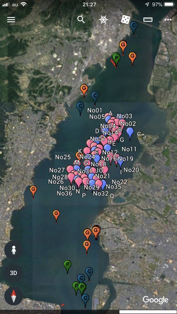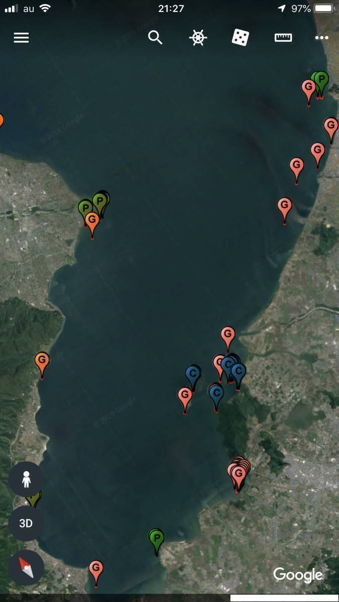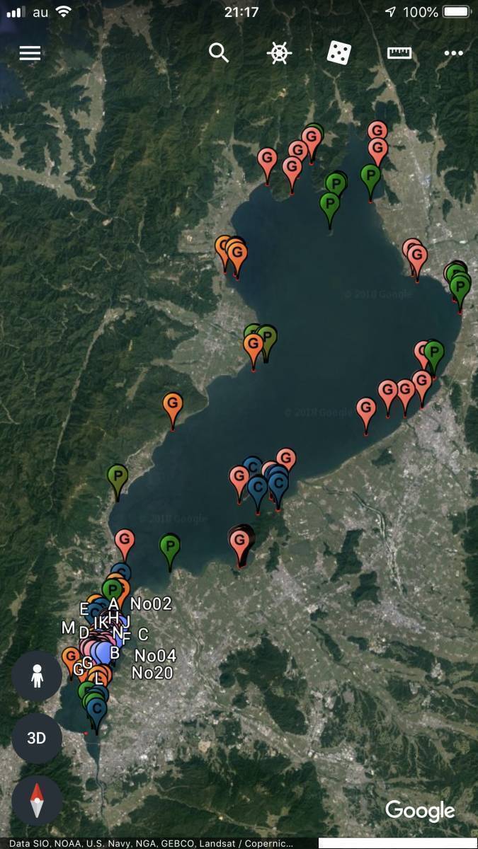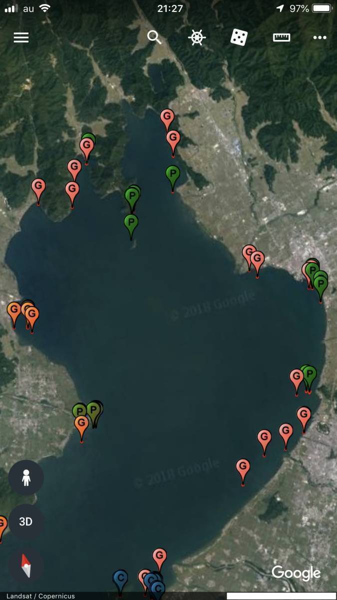 スマホ・モバイル用GoogleEarthモバイル用琵琶湖全域ポイントマップ_Ver1.0