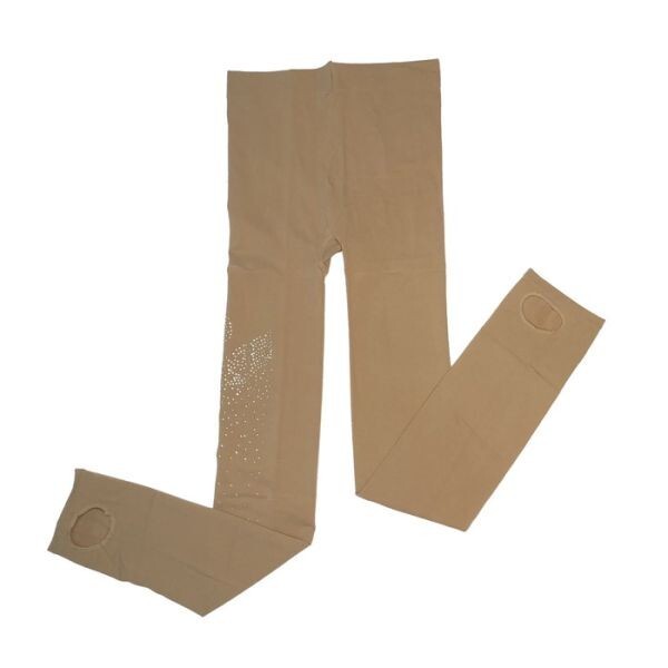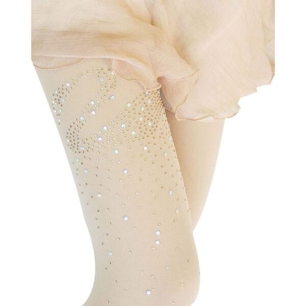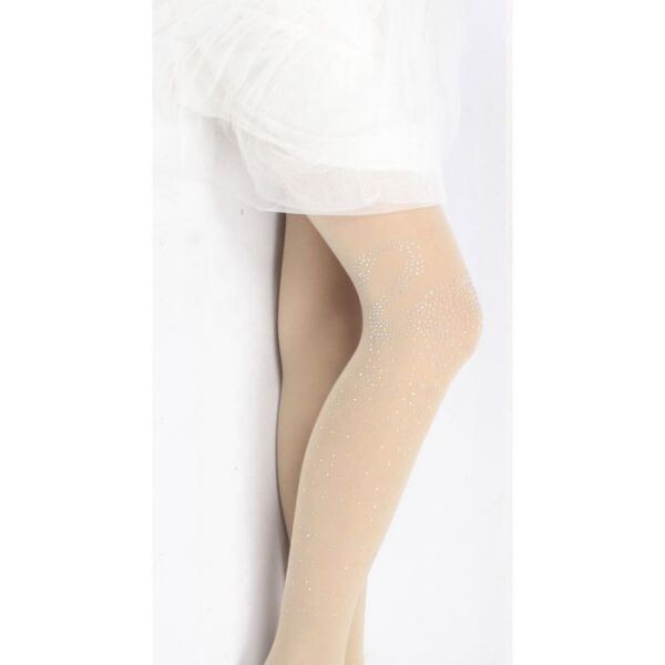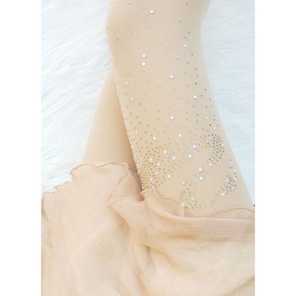 ラインストン付きトレンカ キラキラ 80デニール レディース フリーサイズ ベージュ スワン柄