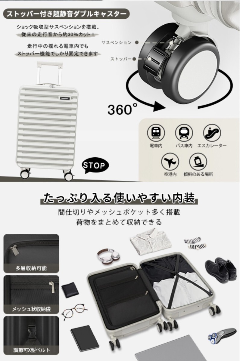 Soralifer スーツケース キャリーケース フロントオープン TSAロック・カップホルダー・USBポート・ストッパー付き ダブルキャスター