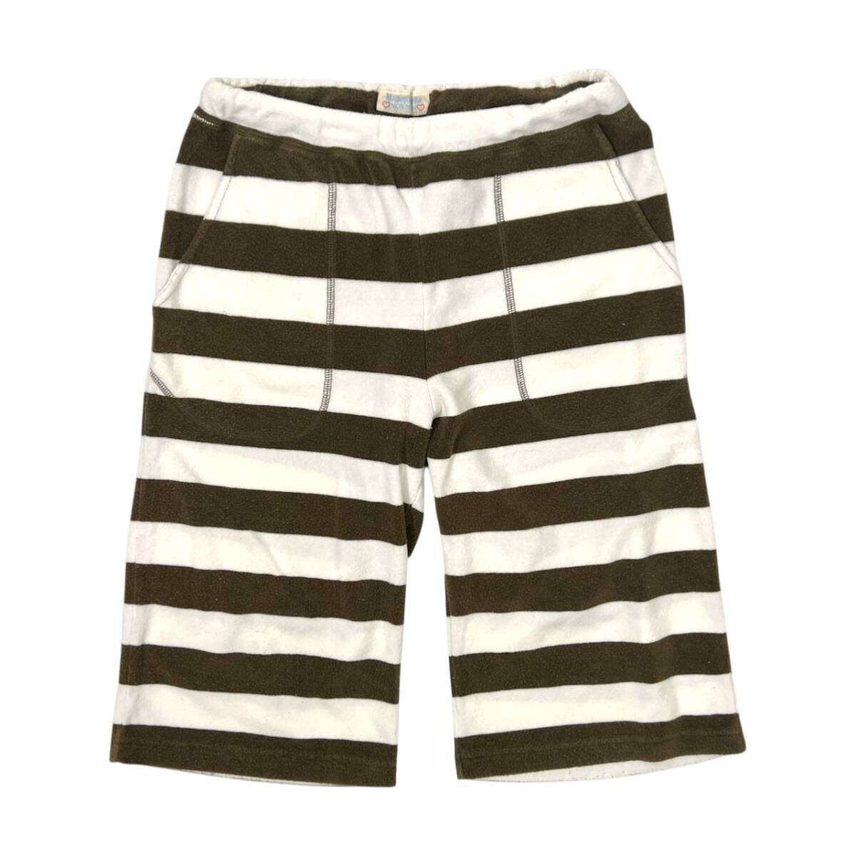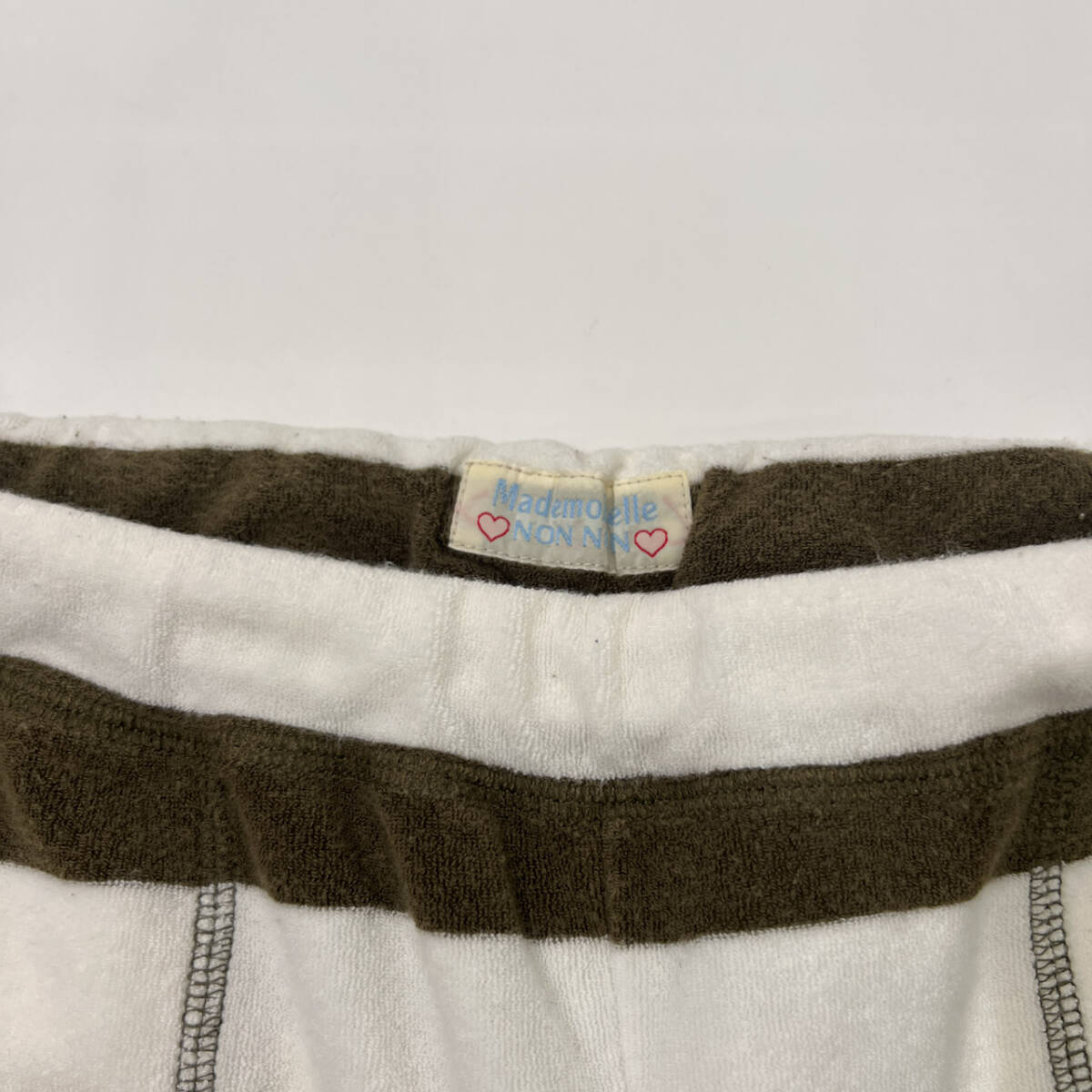 商品名 | Mademoiselle NON NON マドモアゼルノンノン ボーダー パイル地 ハーフパンツ ホワイト オリーブ |