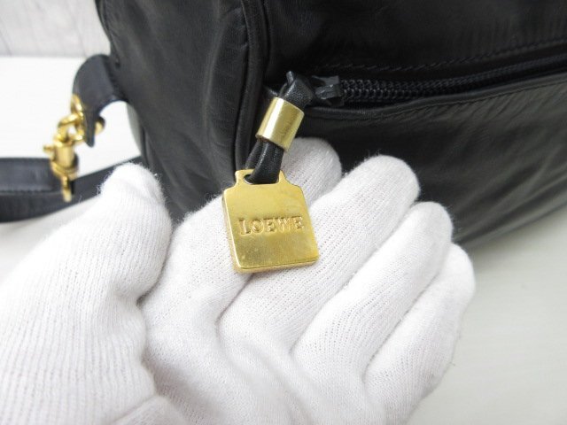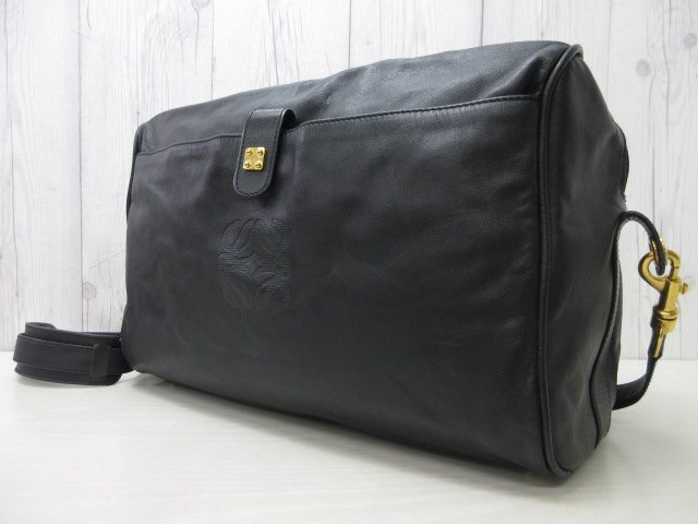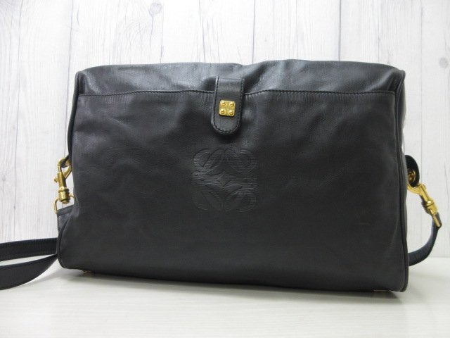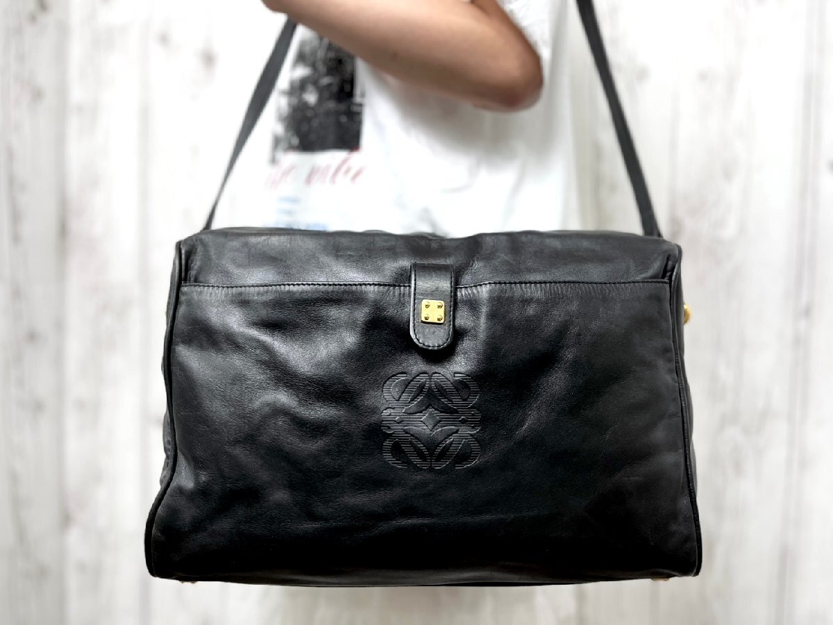 極美品 LOEWE ロエベ ヴィンテージ アナグラム ショルダーバッグ バッグ レザー 黒 A4収納可 メンズ 90280 | ||