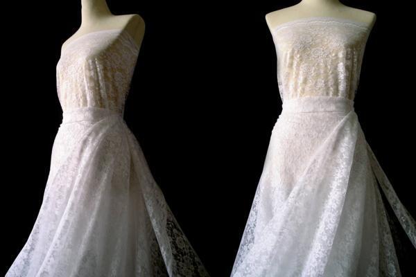 写真について | 1枚目はドレス風にトルソーに掛けて撮影 2枚目は生地目のアップです 3枚目以降は透け感や柄の大きさがわかるように撮影 ロール巻きからカットしてタタミでお送りします |