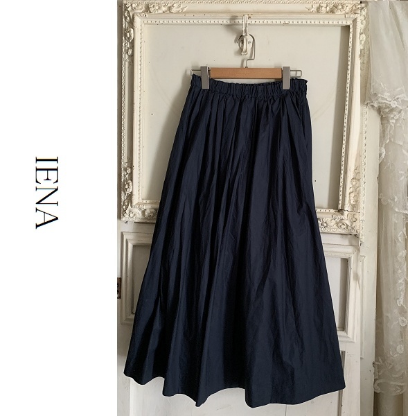 美品 イエナ IENA タイプライター ボリュームスカート  ウエストゴム マキシ丈 紺ネイビー 定価17600円 ロングスカート