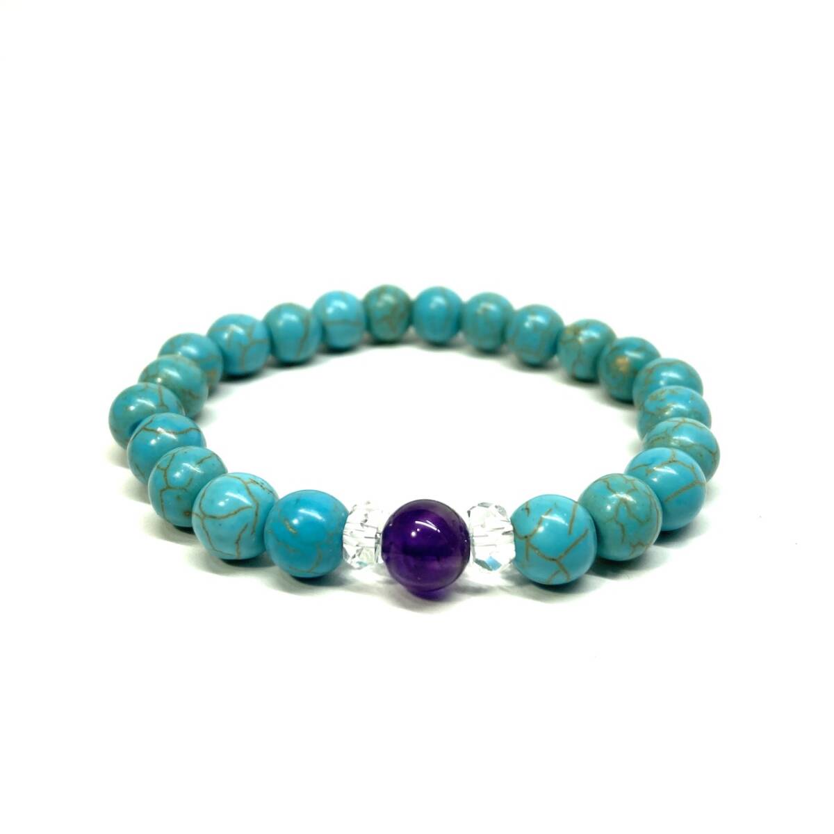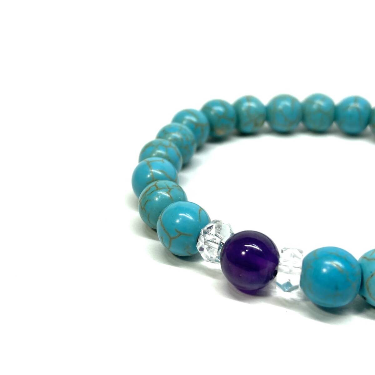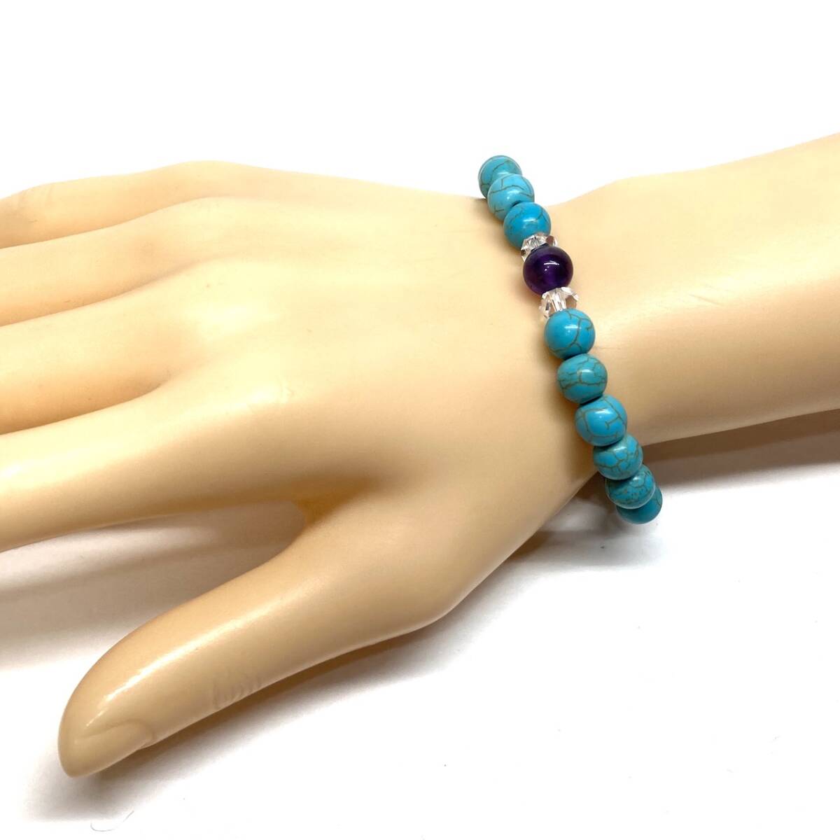 アメジスト&ターコイズ ブレスレット パワーストーン レディース 女性 金運 恋愛 開運 数珠ブレス お守り