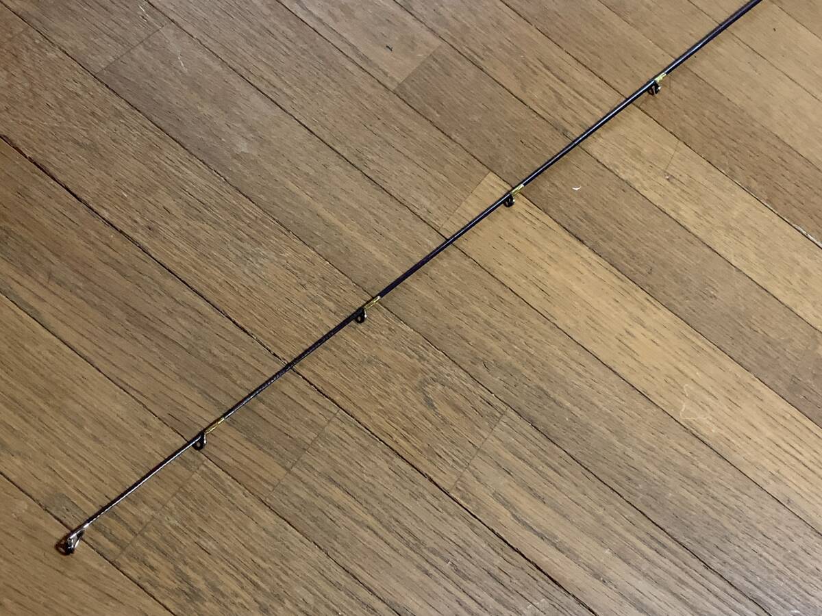 Restaffine レスターファイン ナイトゲーム 7'0" スパイラルガイド イカメタル カスタムロッドです。エクスカリバーの前身でしょうか?カスタムロッドらしく、淡い紫色に輝く透き通ったようにきれいなブランクがとてもカッコいいロッドです。スパイラルガイド採用で、ラインとブランクが接触せずスムーズな操作が可能です!ご覧の通り穂先が1センチ程度詰められているようですのでご注意ください。穂先はかなり柔らかい調子となっていますのでロッドの性能には変化は感じませんでしたが、その分安く出品します!とてもレアなロッドですので、レスターファインファンの方はこの機会をお見逃しなく!状態はご覧のとおり美品ですが、中古ロッドにつき使用に伴うキズ・汚れがありますので、神経質な方はよくご確認の上ご入札ください。他にも多数出品していますので、宜しければご覧になって下さい。