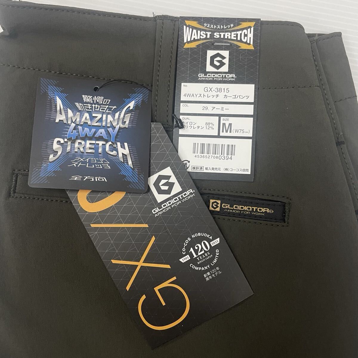 新品64469 グラディエーターGLADIATOR GX-3815 アーミー Mサイズ 4WAY ストレッチカーゴパンツ 作業服 ワークパンツ コーコス信岡