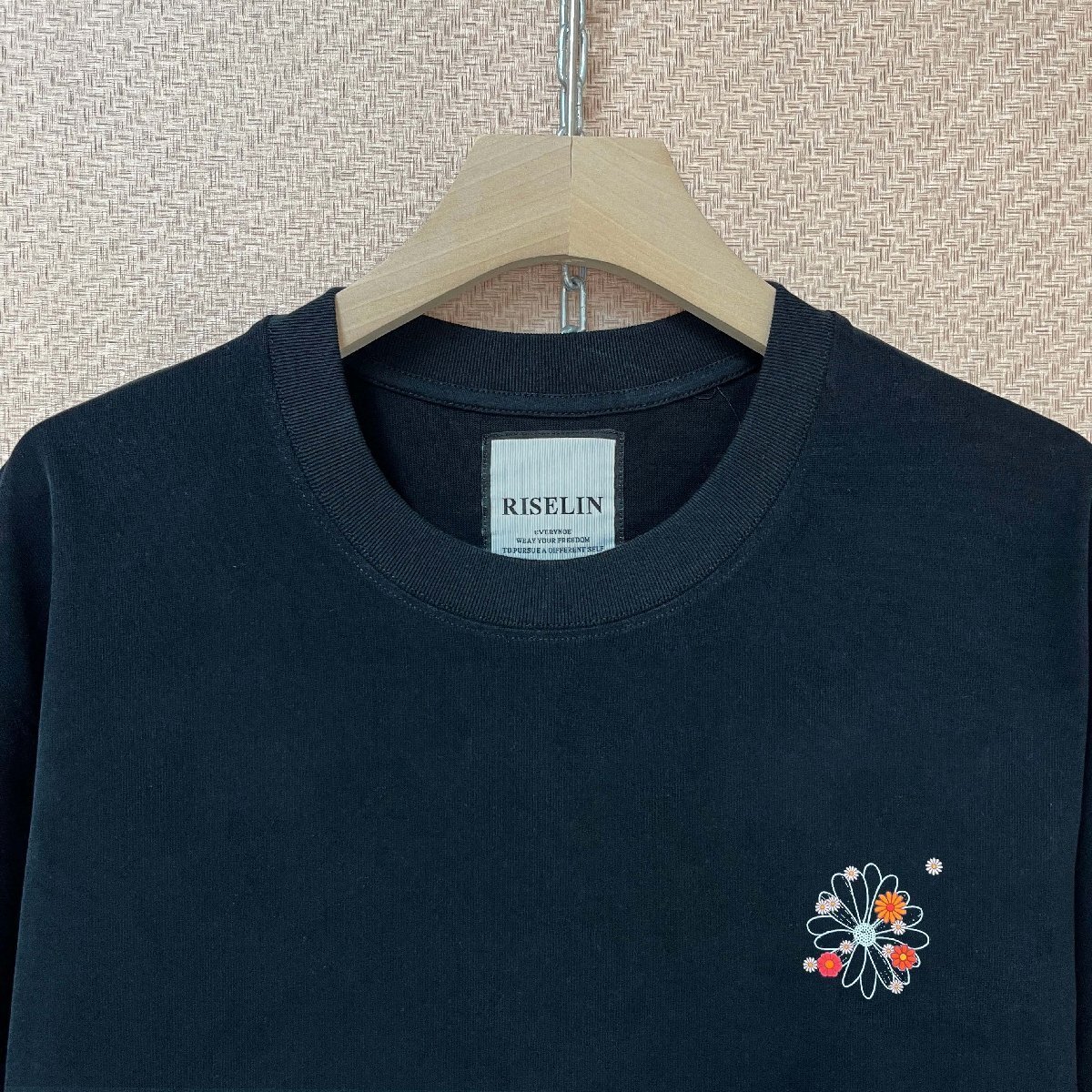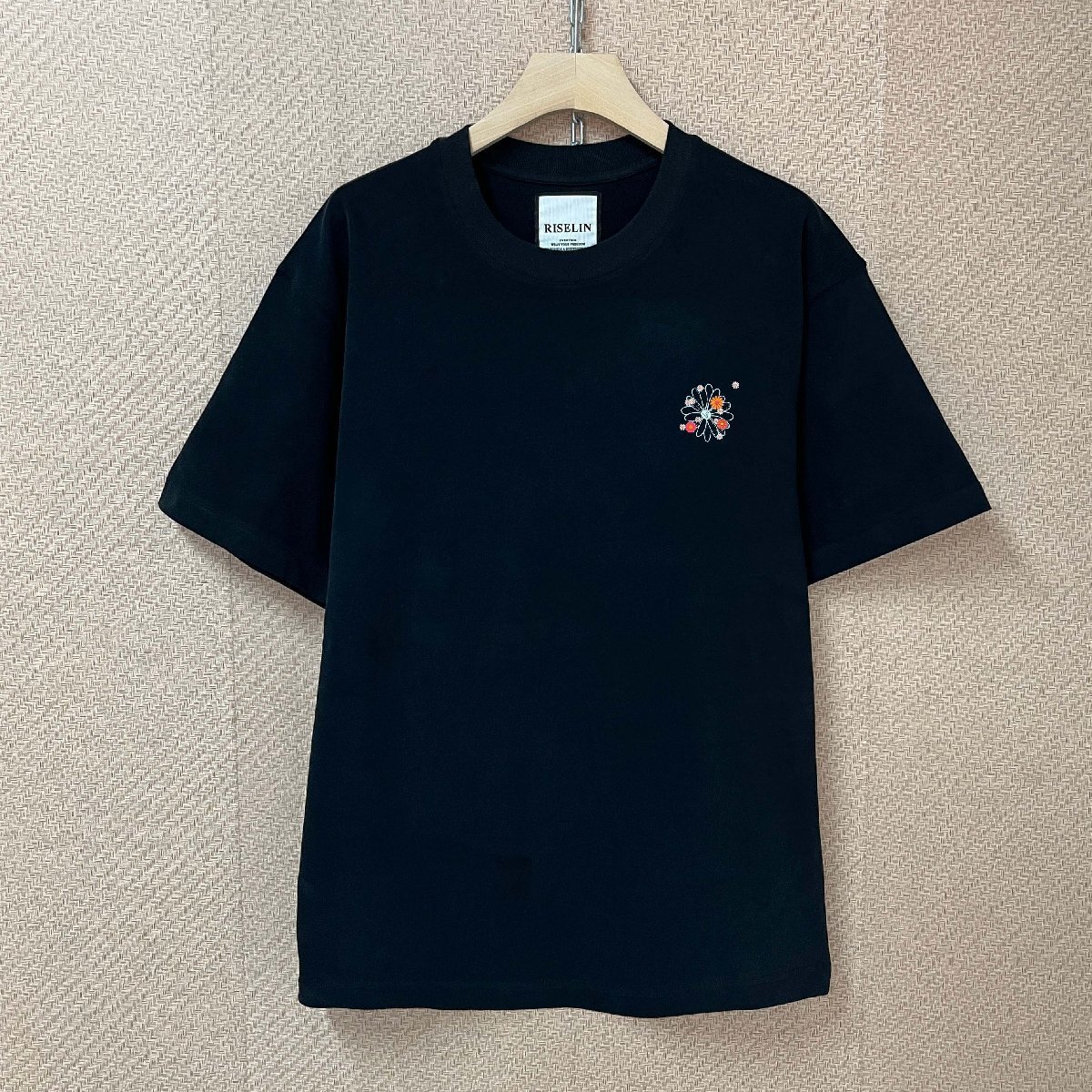 首元はシンプルなクルーネックを採用し、程よくゆとりがあるので締め付け感なくリラックスした着心地です。定番の無地Tシャツに華やかな花柄をプラスしたデザインは、ごちゃごちゃせずに洗練されたおしゃれ感を演出。全体的にゆったりとしたサイズ感で、リラックスムードたっぷりです。