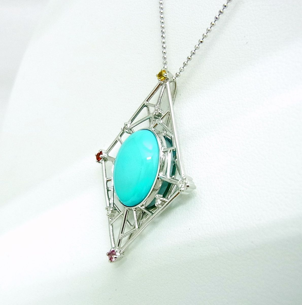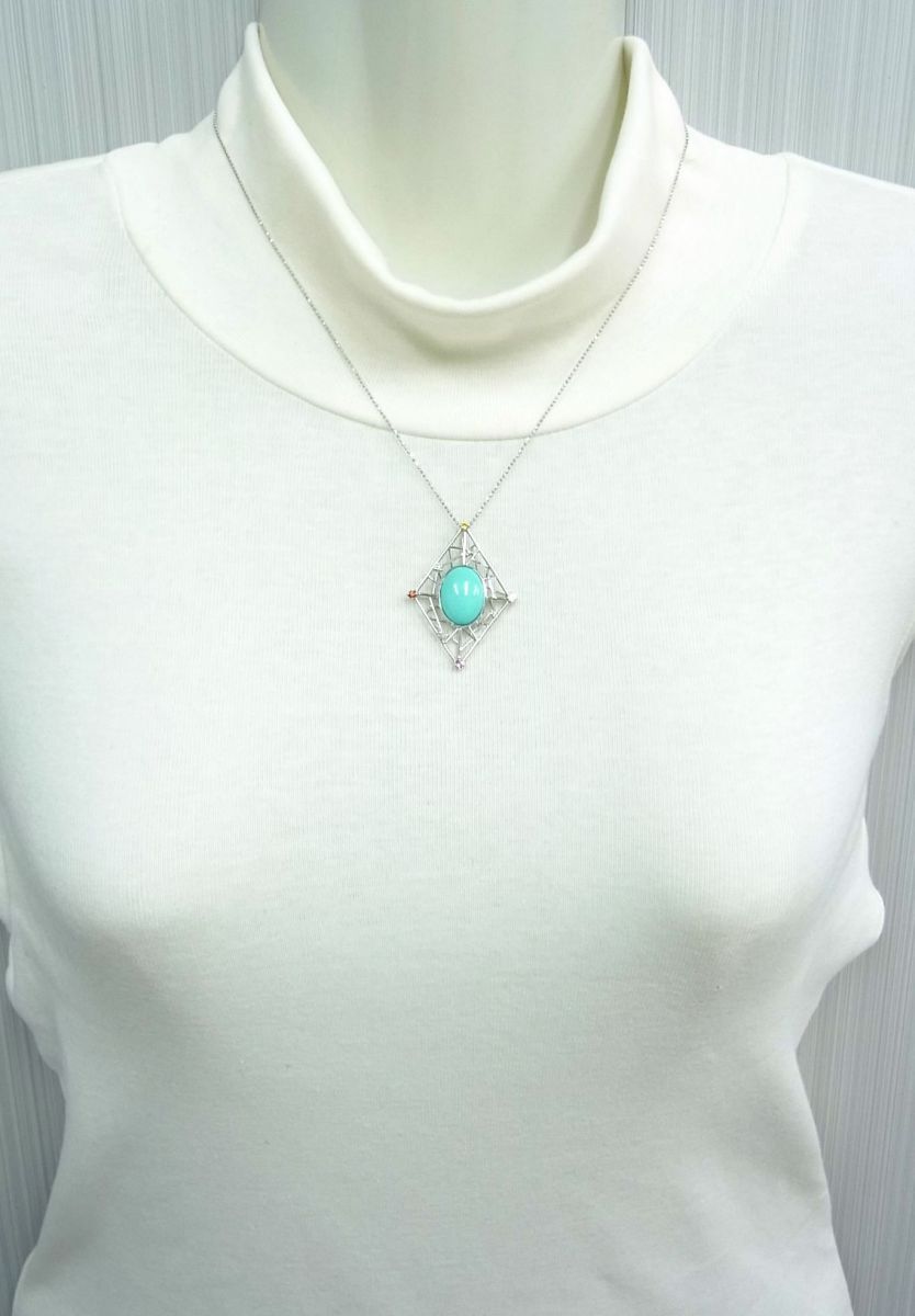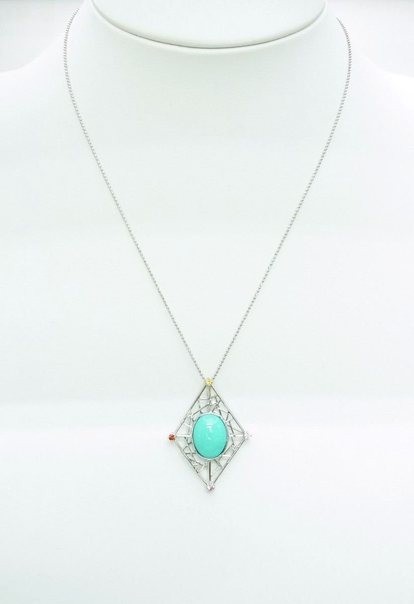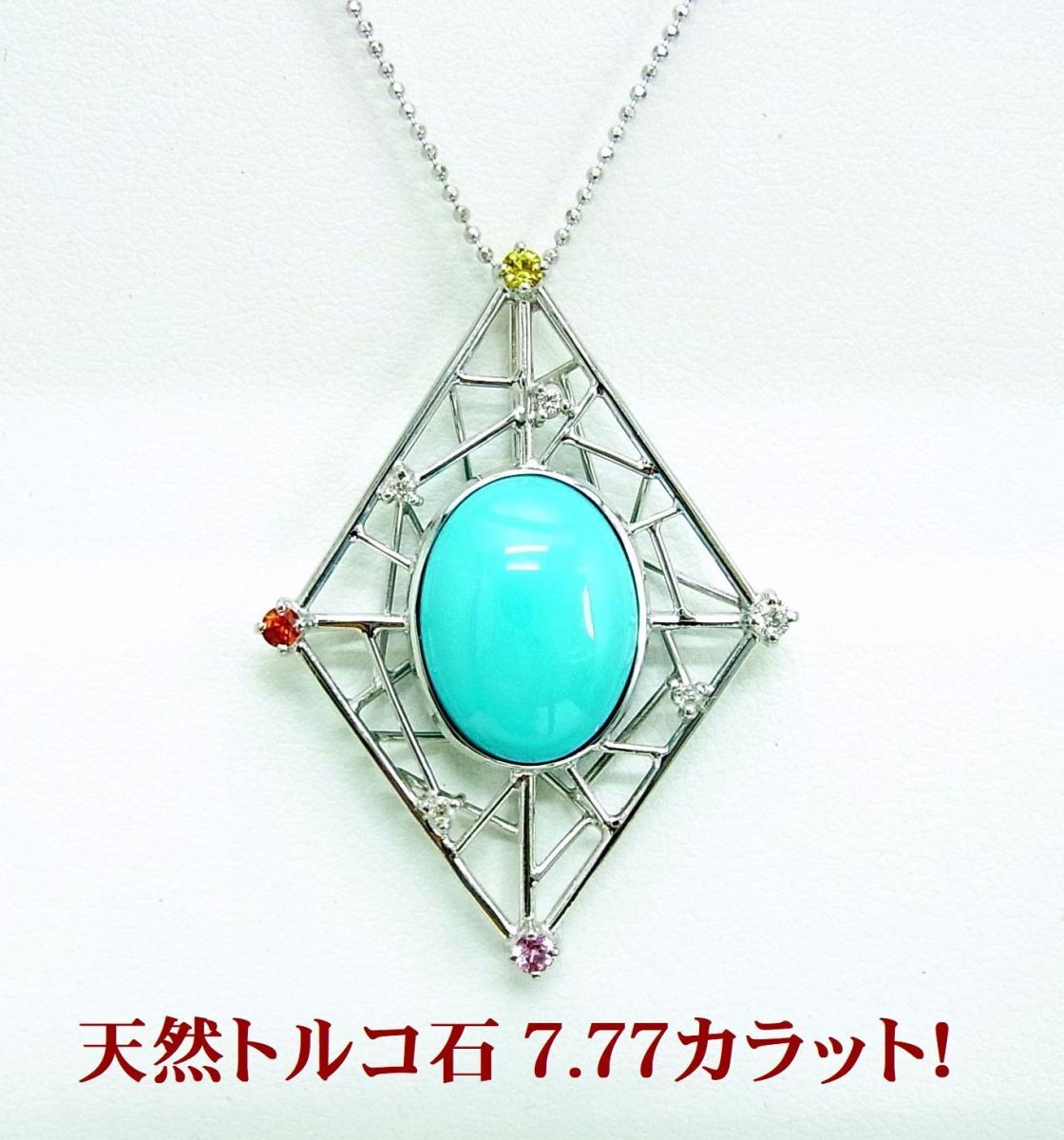 天然トルコ石 ターコイズ 7.77ct ダイヤ マルチ宝石 18金ホワイト ペンダントネックレス 商品動画あり 送料込み