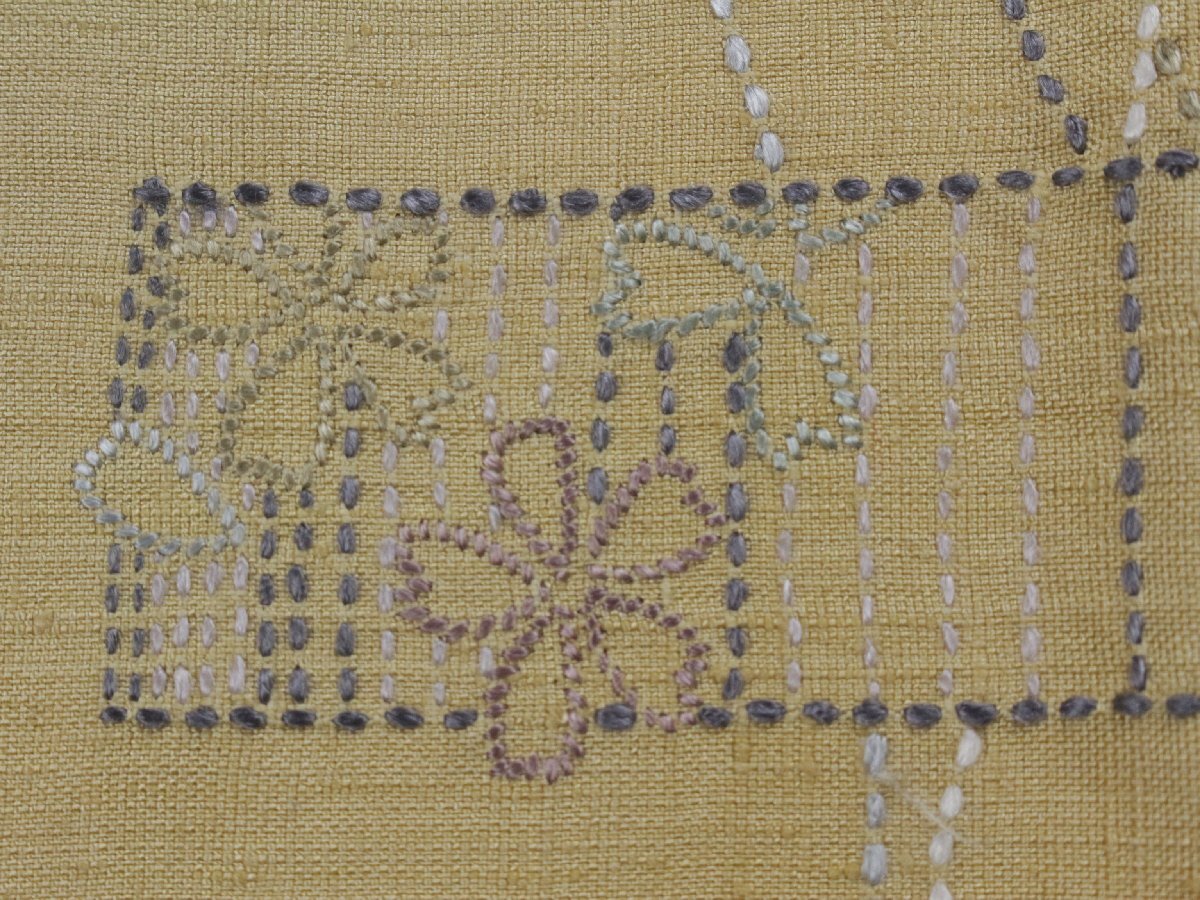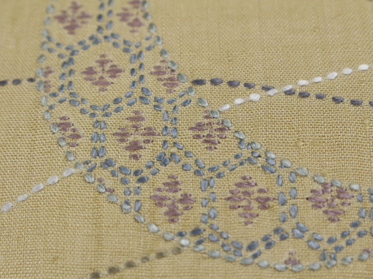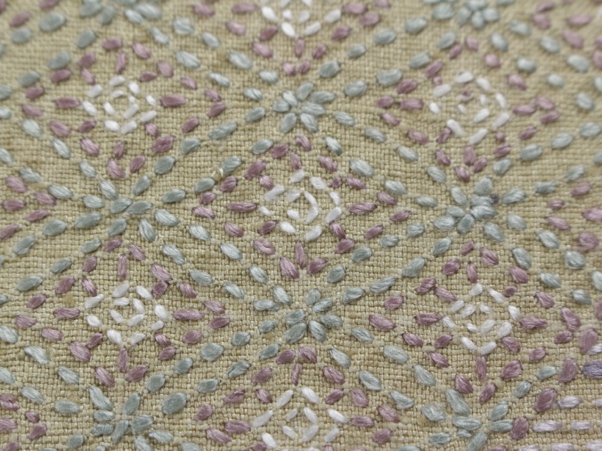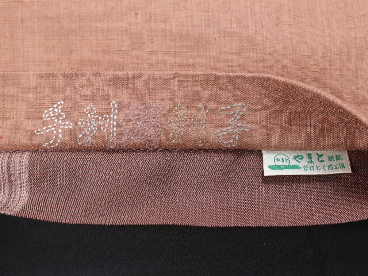 手仕事の温もりと美意識が宿る、手刺繍刺子による意匠が印象的な正絹袋帯のご紹介です。 あたたかみある朱や橙などの暖色系のグラデーションが帯地に優しく広がり、夕暮れから宵にかけての空の移ろいを思わせるような、どこか詩的な雰囲気を湛えています。 そこに丁寧な手刺繍で表現されたのは、やわらかく浮かび上がる月と、しなやかに伸びる樹木、そして流れるような線のモチーフ。 自然の情景を抽象的かつリズミカルに捉えたその構図は、静寂と動き、温かさと凛とした空気感が共存し、着姿に独特の奥行きをもたらします。 控えめな中にもしっかりとした個性が光る、まさに大人のための装いにふさわしい帯です。 日常のお出かけから観劇、美術館めぐりなど、感性を楽しむ場面でぜひお使いいただきたい、趣豊かな逸品です。 お目に留まりましたら、是非ご検討下さいませ。 ※撮影時の部屋の照明によって画像の色に若干の差がございます。色味に差がございますことをご了承のうえご検討下さいませ。 …状態… 締め跡あり。 ※全くの新品ではございませんので、記載のない変色やスレ、ヤケ、その他僅かな難がある場合がございます。そのような理由でのキャンセルはお受けできませんので、ご了承の上ご検討お願いいたします。 |