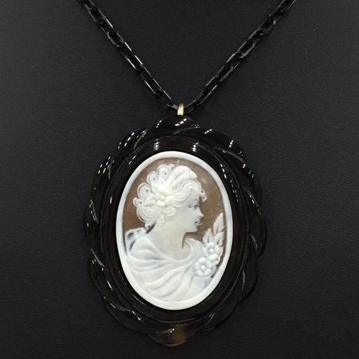 | 鼈甲 べっ甲 カメオ ネックレス ブローチ アクセサリー レディース 保存箱付き ファッション小物 重量約24g QH102-94 |