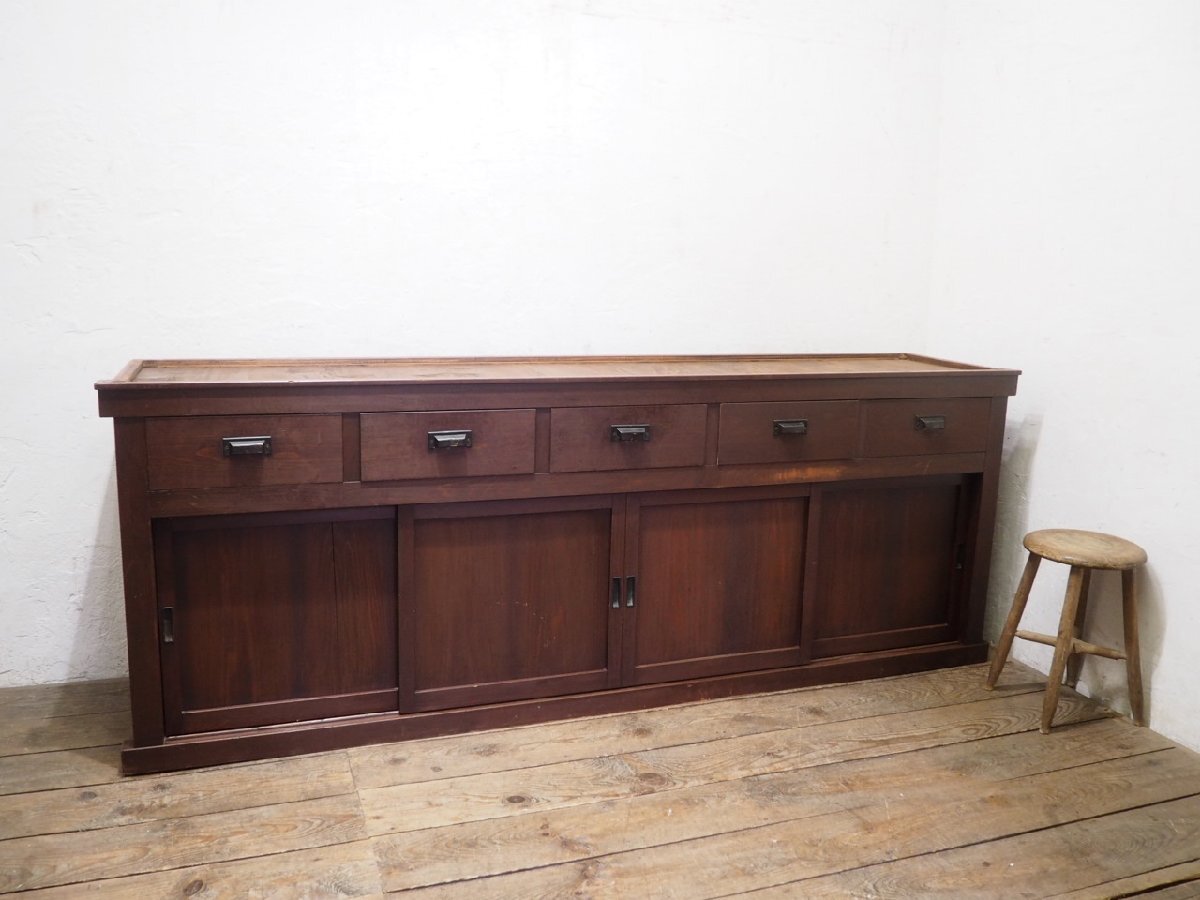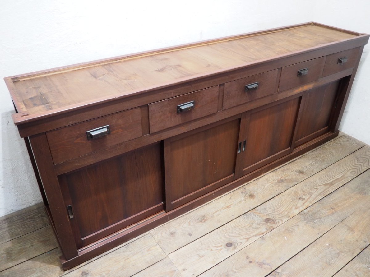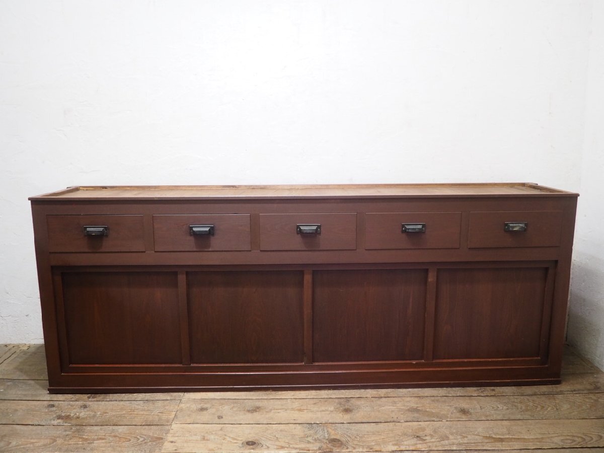 タ荷W1325◆②H80cm×W216,5cm◆特大◆アンティーク◆大きい木製飾り棚◆大型家具 食器棚 収納棚 カウンターテーブル レトロU(ヤE)卸
