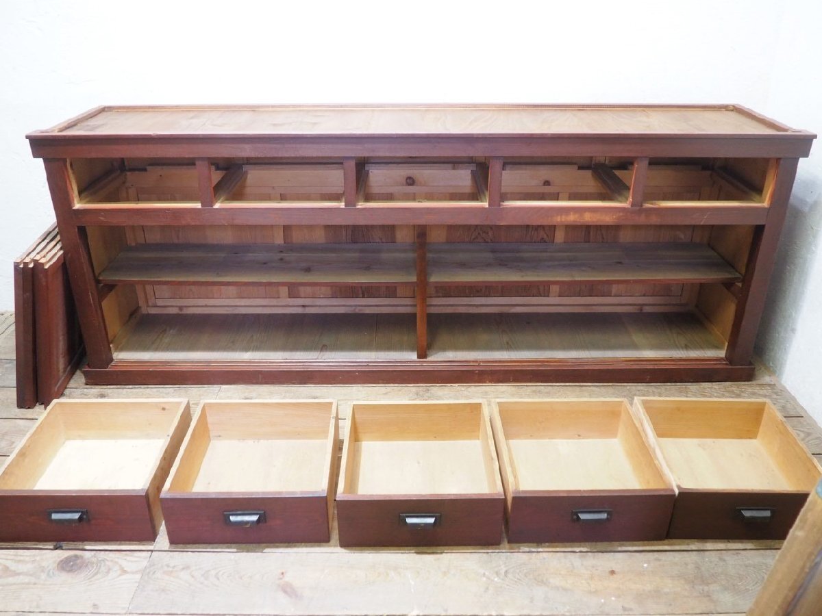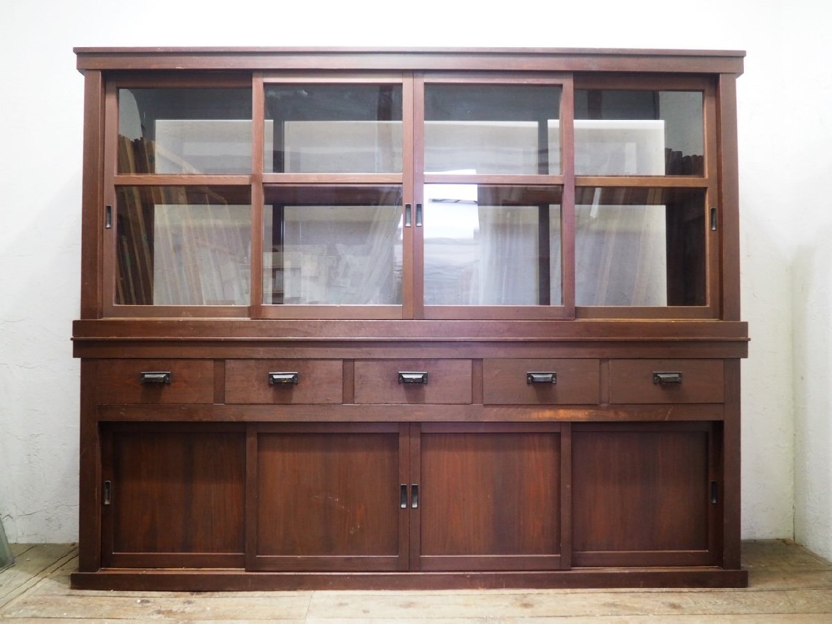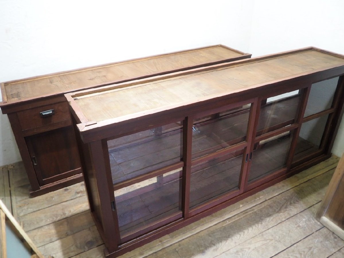 タ荷W1325◆②H80cm×W216,5cm◆特大◆アンティーク◆大きい木製飾り棚◆大型家具 食器棚 収納棚 カウンターテーブル レトロU(ヤE)卸