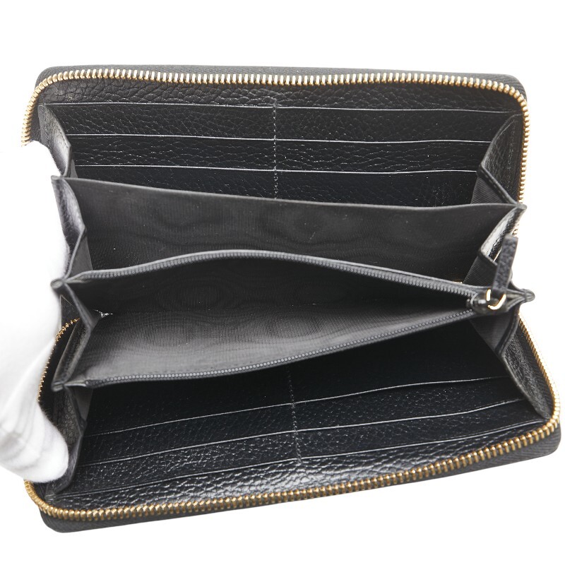 グッチ GGマーモント ラウンドファスナー 長財布 456117 ブラック レザー レディース GUCCI 【中古】
