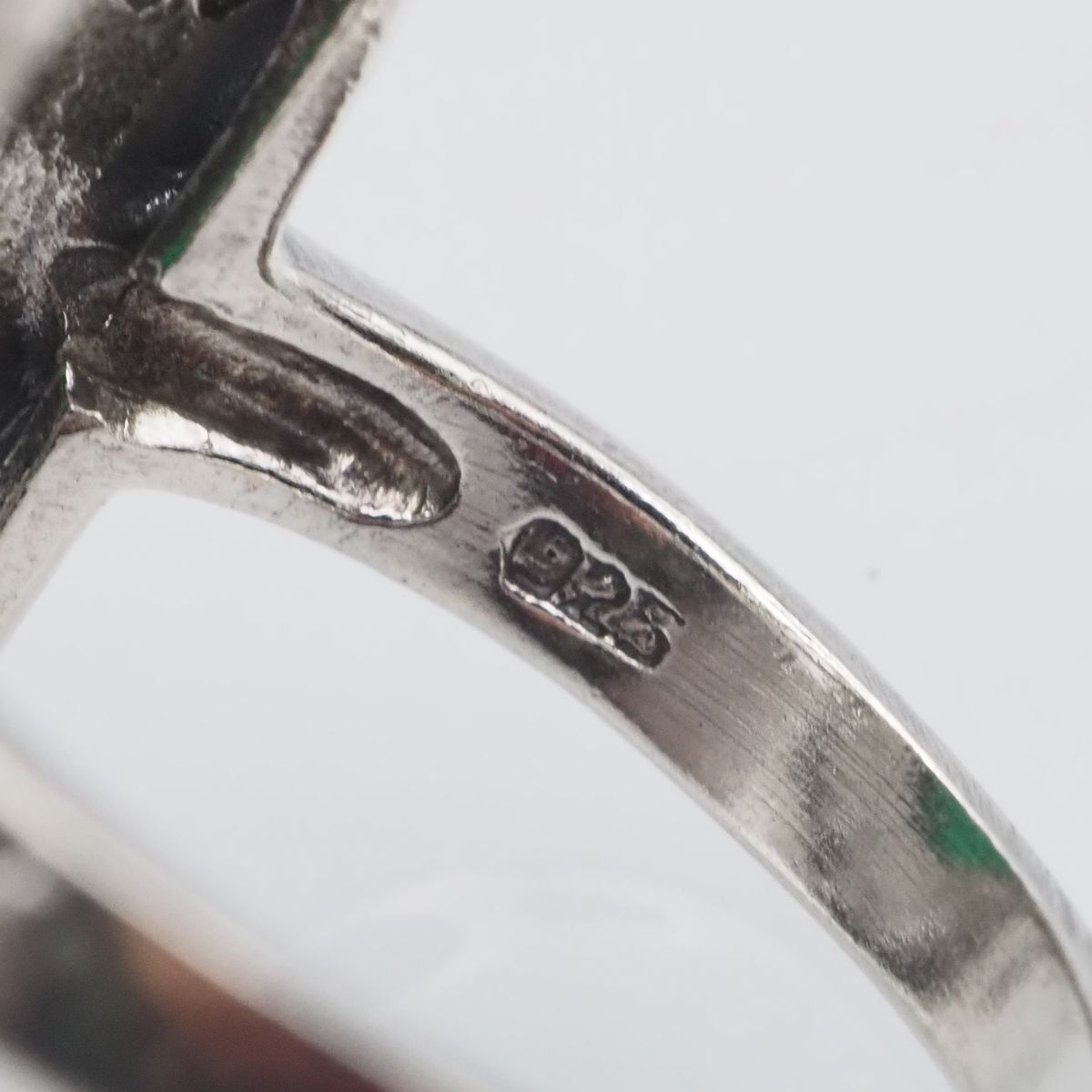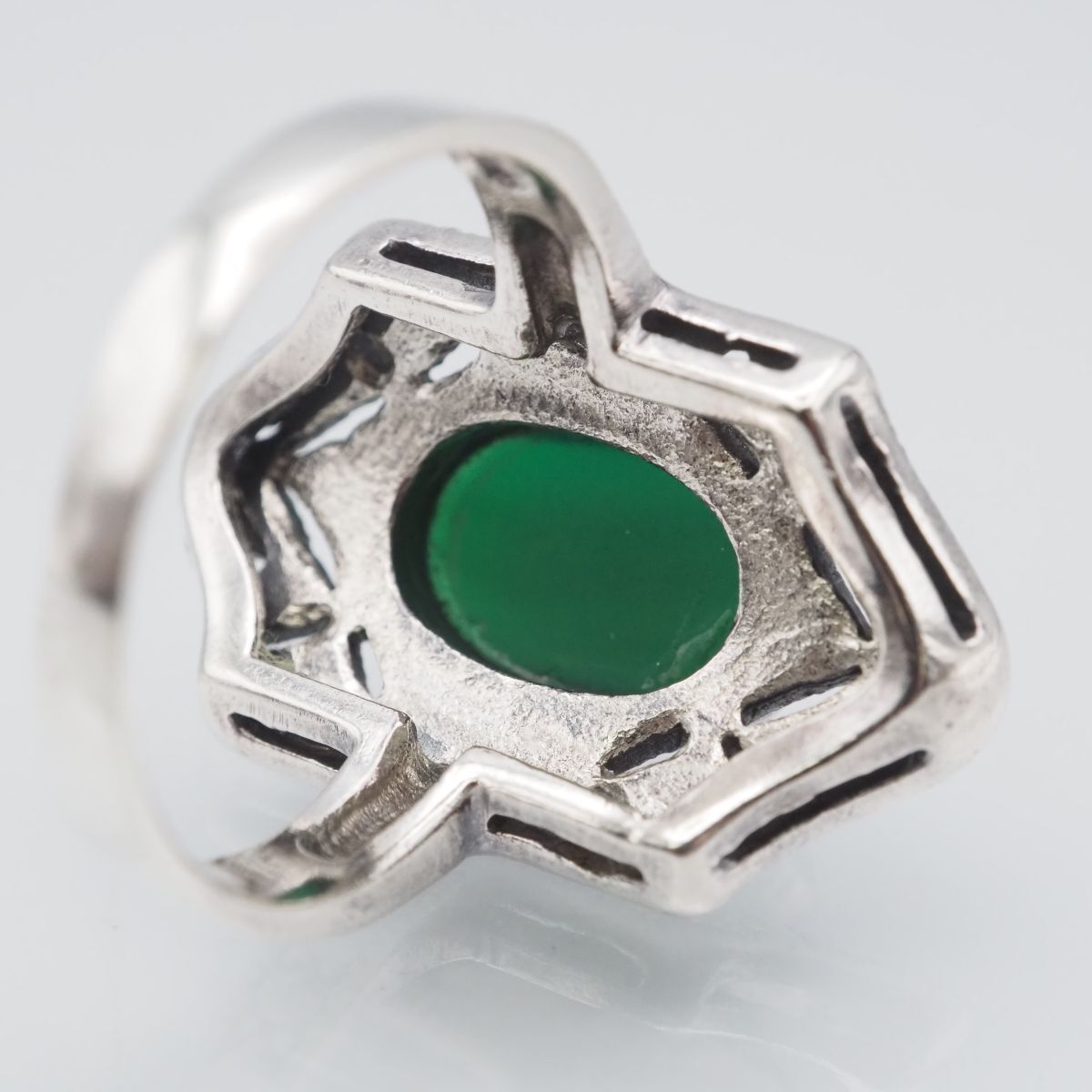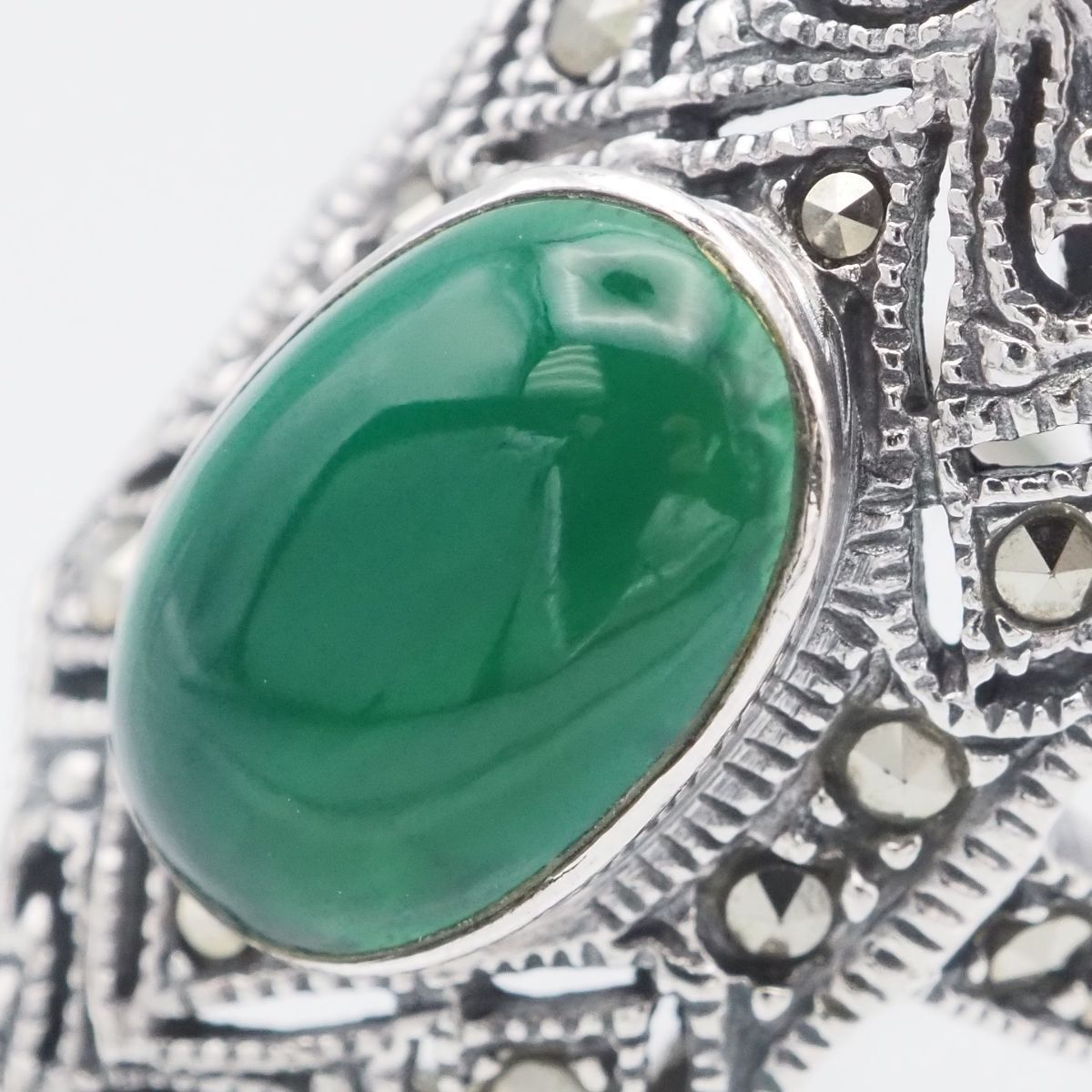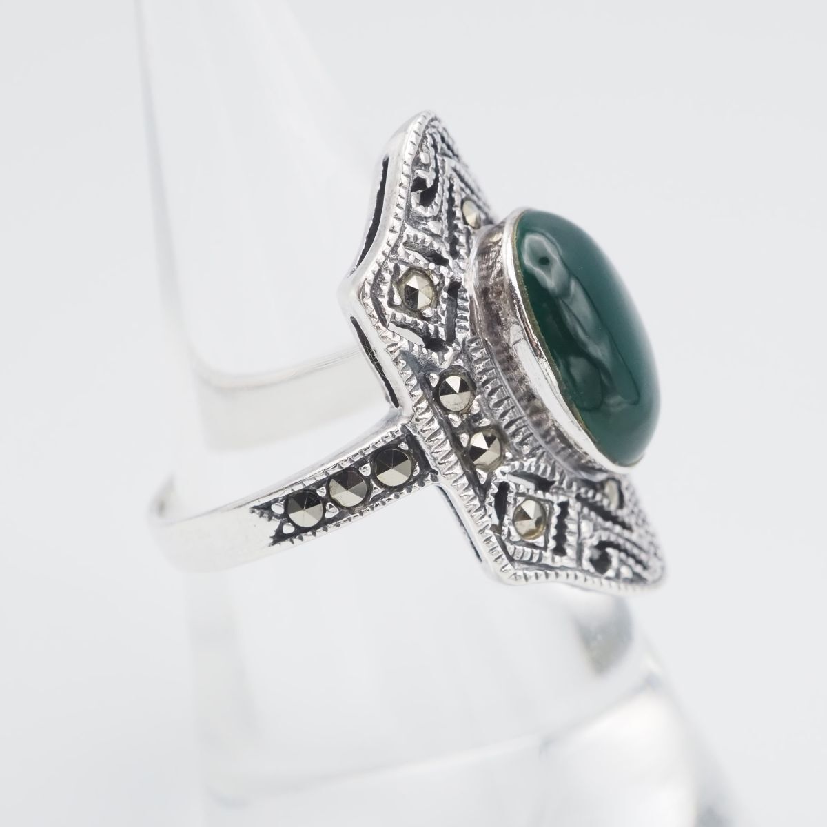 F827 グリーンアゲート 緑瑪瑙 メノウ 925刻印 リング マーカサイト マルカジット デザイン シルバー 指輪 ヴィンテージ 13号