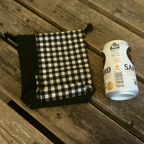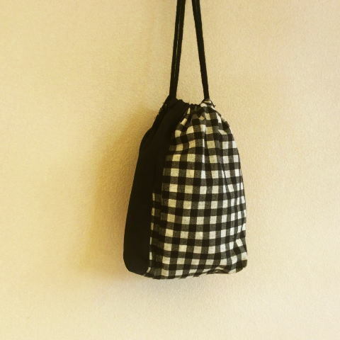 【入学、入園!】450円黒チェックパッチワーク巾着袋 【手作り小物】