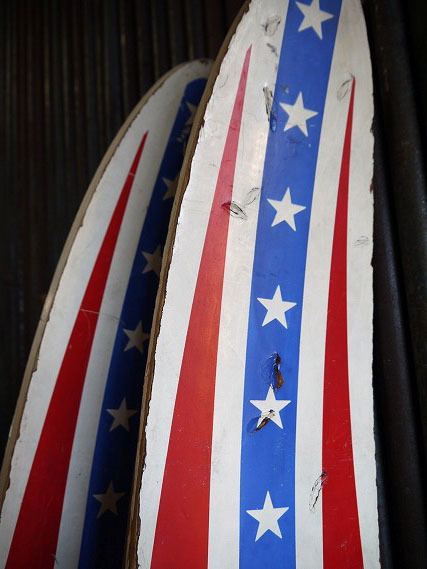 商品説明 岡山STAGE GOOD OLDより出品します。アメリカで買い付けましたビンテージのLake Region Water Skis です。経年によるウッドとメタルの風合い&トリコロールカラー&星条旗デザインの雰囲気良くかっこいいです。ウッド×メタル素材の重量のあるしっかりとした作りですが、実用はできませんので店舗やガレージのディスプレイとしておすすめです。年代の表記はありませんがデザインから1970年代になります。状態は多少の傷、擦れ、汚れや凹みやカケ、金属部分にサビ等はありますがディスプレイには問題ない雰囲気のある状態です。ただあくまでビンテージジャンクになりますのでご理解のある方のご購入をお願いします。 サイズ 高さ最大各約170cm、横幅約17cm、奥行き最大約20cmになります。 発送方法 保障の利く佐川急便の元払い240cmサイズ料金で発送します。 コメント 店頭にも出しています。タッチの差で売れた場合はご了承下さい。■落札後の連絡及びご質問の返答は基本的に午前10時~午後6時までとさせて頂きます。毎週水、木曜日、年末年始や時間外でのご連絡は休み明け及び翌日のご連絡となりますので予めご了承下さい。 STAGEホームページ https://www.good-oldstage.com/ |