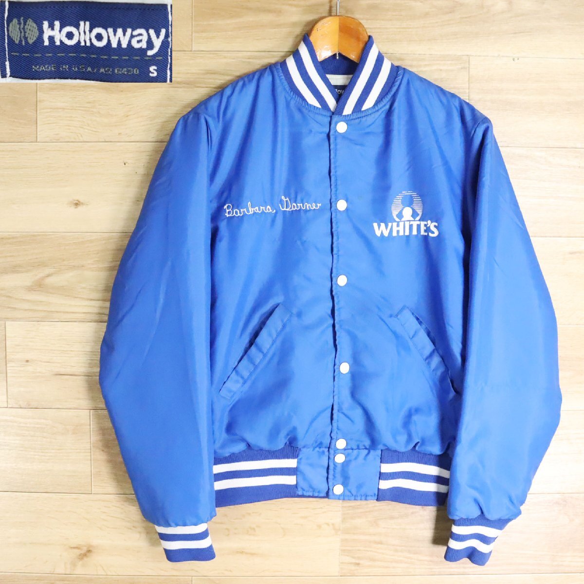 Y7S/D7.24-2 USA製 Holloway ホロウェイ ナイロンスタジャン 中綿 アワードジャケット バーシティジャケット S ブルー 古着