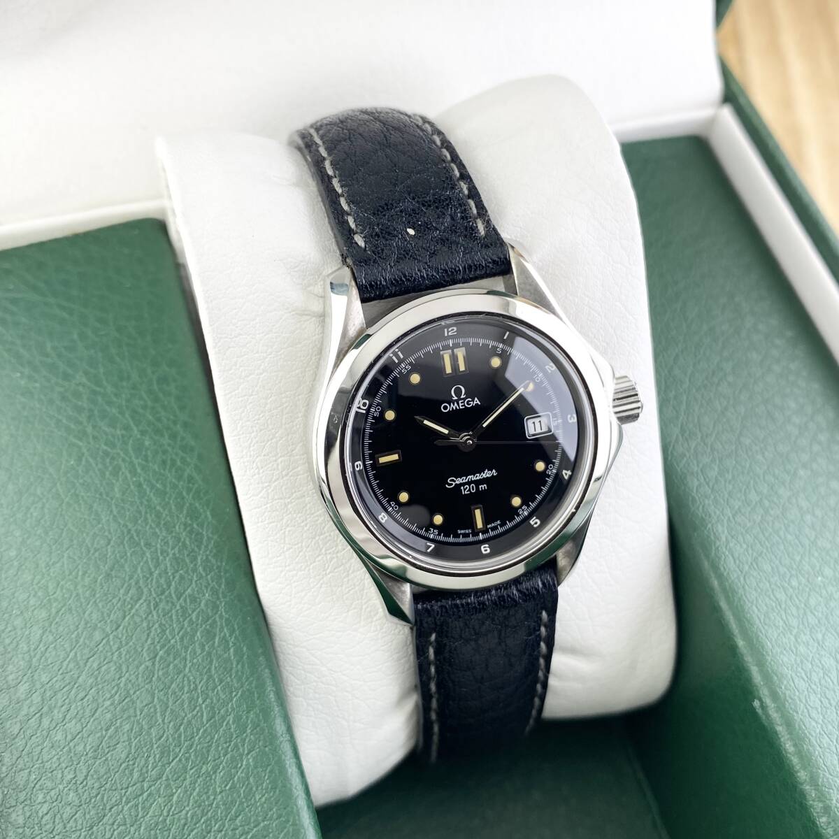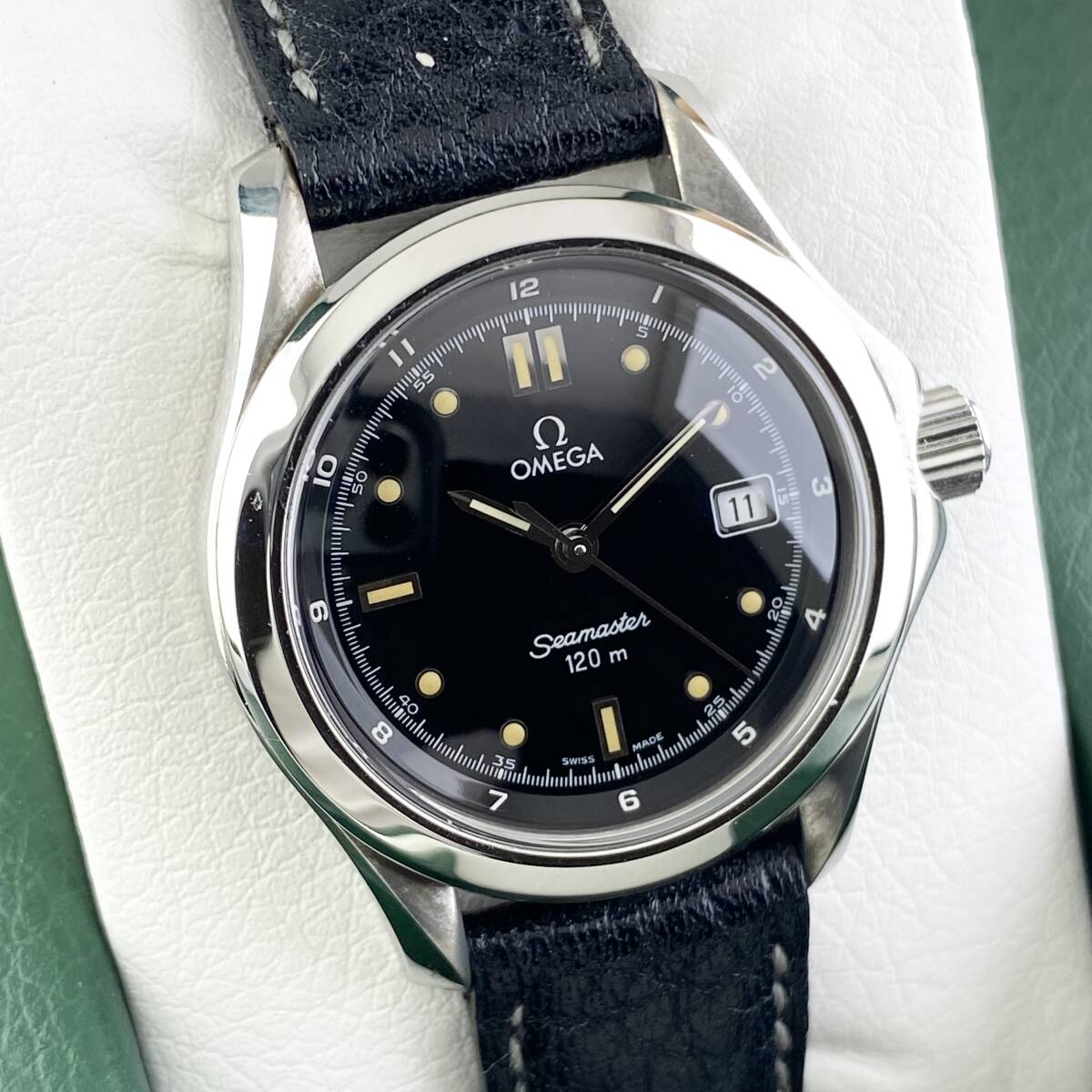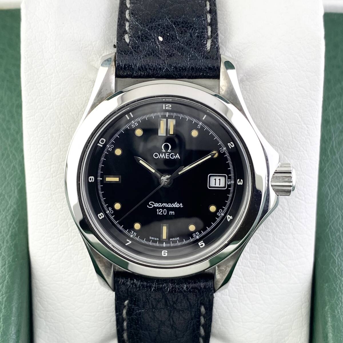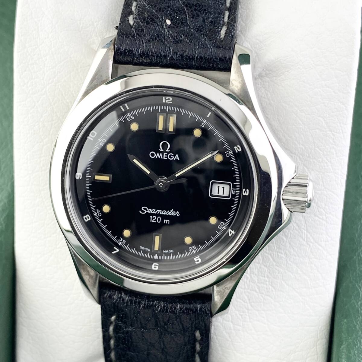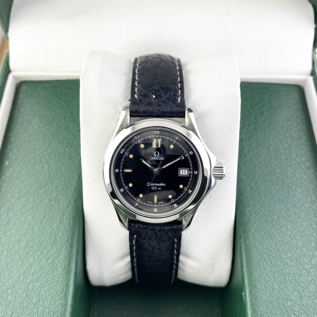 【1円箱付】OMEGA オメガ 腕時計 レディース SEAMASTER シーマスター 120m ブラック文字盤 ラウンドフェイス デイト 可動品 | |||