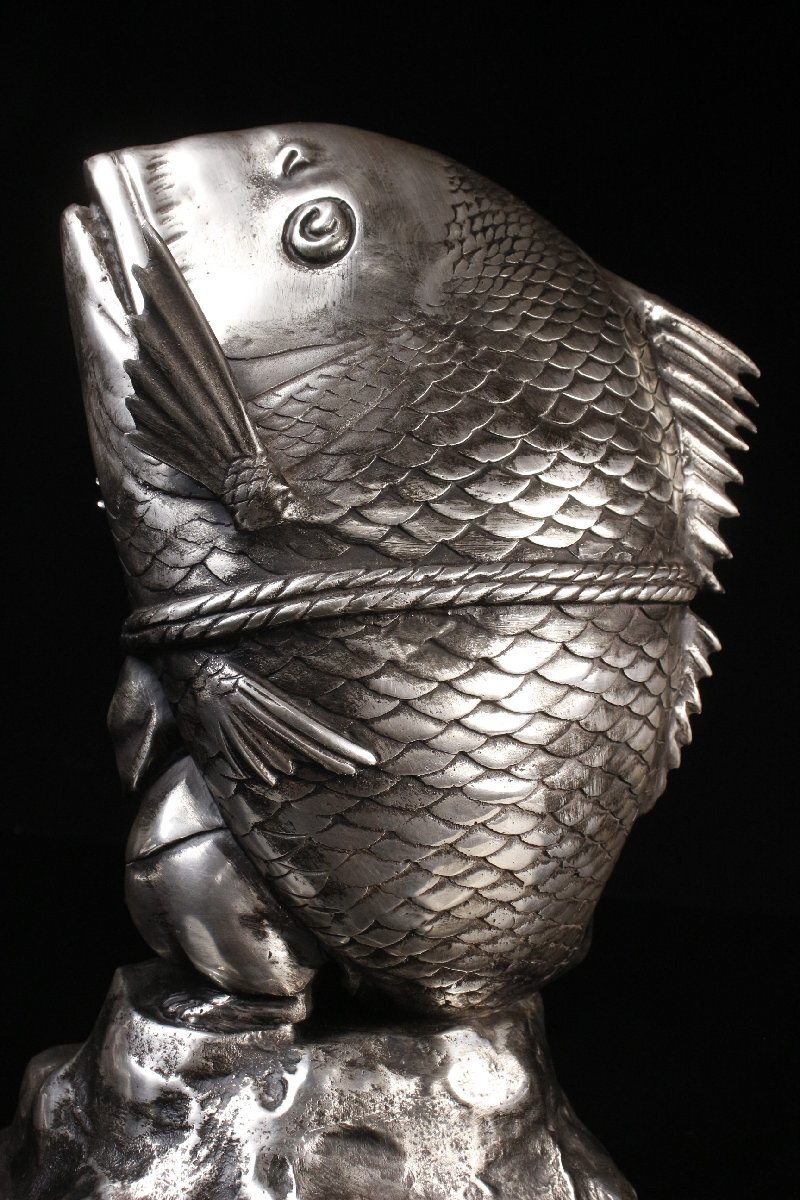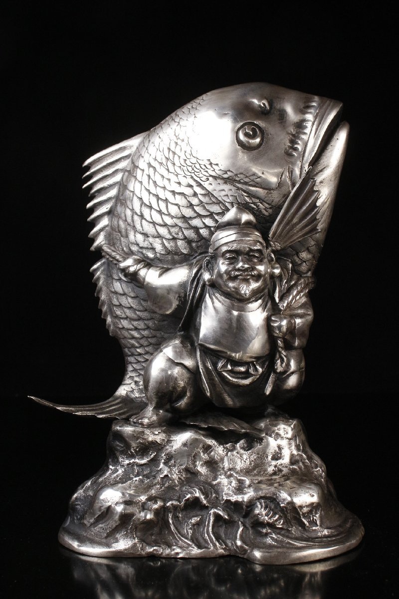 * * * 商品詳細 * * * ここでしか出逢うことのできない唯一の美をご紹介させて頂きます。 大きな鯛を背負った躍動的な姿で表現された恵比寿像のご紹介です。 造りはとても細密で、鯛の硬い鱗や鋭い背びれまで丁寧に表現されています。 恵比寿の表情も豊かで、肌の張りまでリアルに造りこまれています。 目鼻ははっきりとしており、その影が一層立体感を持たせ 実在しているという錯覚を持たせるほどの臨場感があります。 隅々まで精巧に造りこまれた立体作品としても縁起物としても素晴らしい逸品です。 この機会に是非お手元にてご堪能下さい。 ■商品内容/置物、箱 ■サイズ/横23cm×高33cm×奥行17㎝ 重量5.559kg 箱:横25.5cm×高39cm×奥行22㎝ ■状態/スレ、小キズ、変色、箱にスレ、キズ、潰れがございます。 銀刻印がある為タイトルに記載してありますが銀を保証するものではありません。 ご理解の上ご入札ください。 ※写真にてご確認、ご了承の上ご入札ください。 ![]() Yahoo!かんたん決済 * * * 発送詳細 * * * 入金確認後3営業日以内に発送致します。 ※直接引き取りも可能です。 60~160サイズにつきましては 佐川急便、ゆうパックのどちらかで発送いたします。 ゆうパック発送の場合、弊社の発送日から追跡サービスに問合せ番号が反映されるまで 約1日ほどお時間がかかりますのでご了承下さい。 * * * 注意事項 * * * 運送中の破損があった場合は速やかに当社までご連絡下さい。 保険を利用するのに受取連絡後に運送会社による現場での破損状況確認が必要となります。 勝手に返送されますと保険の適用外となりますのでご注意ください。 * * * * * * お問い合わせ:082-236-8669 |