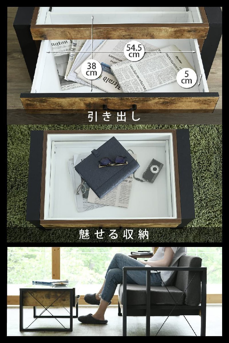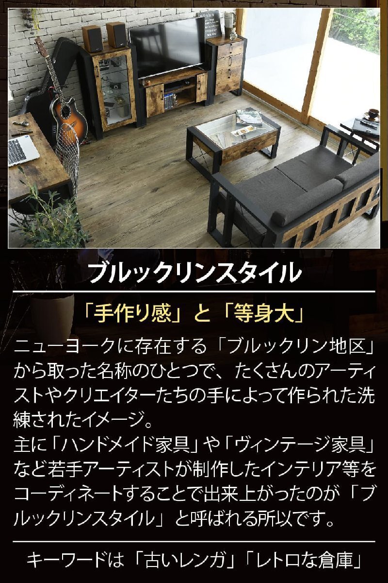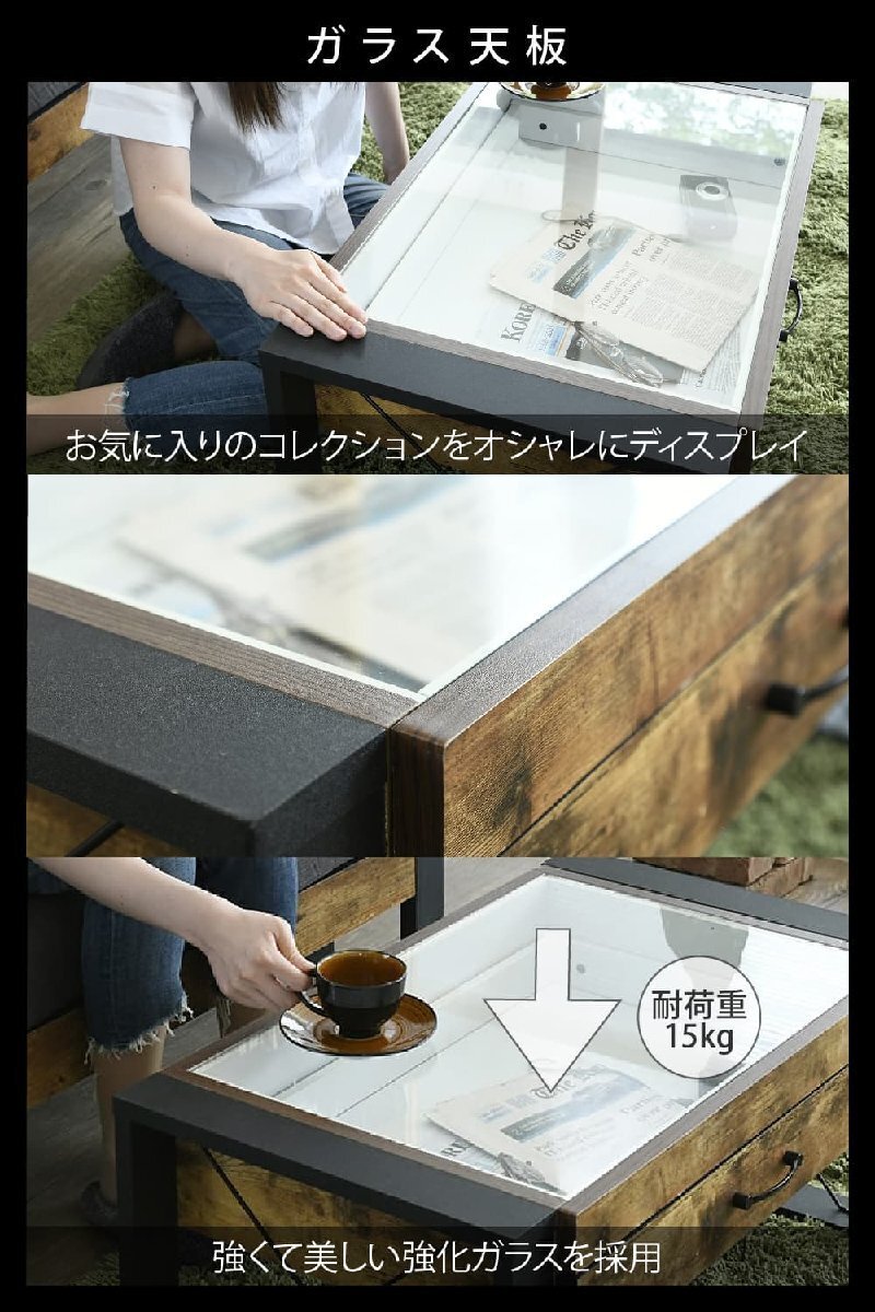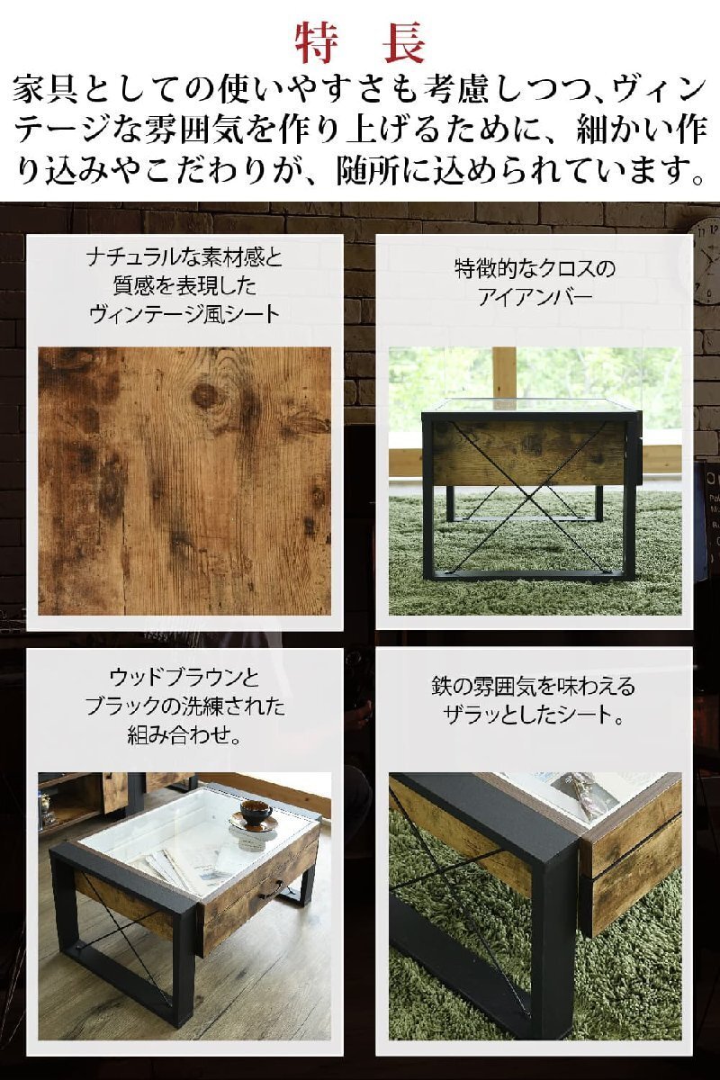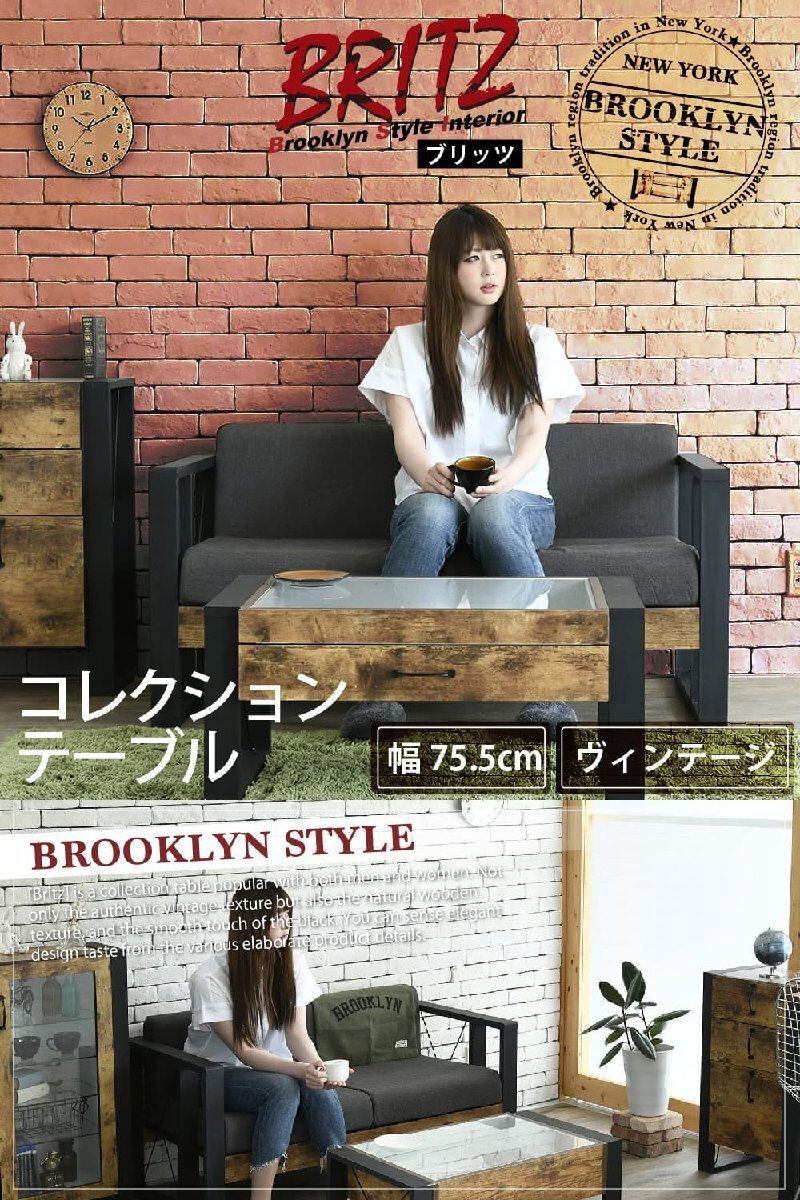 ■商品説明 カフェの雰囲気を演出できる、ヴィンテージ風シートがおしゃれなブルックリンスタイルのコレクションテーブル。無骨すぎないデザインで男女問わずご使用いただけます。お気に入りの小物はここに収納! |