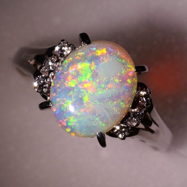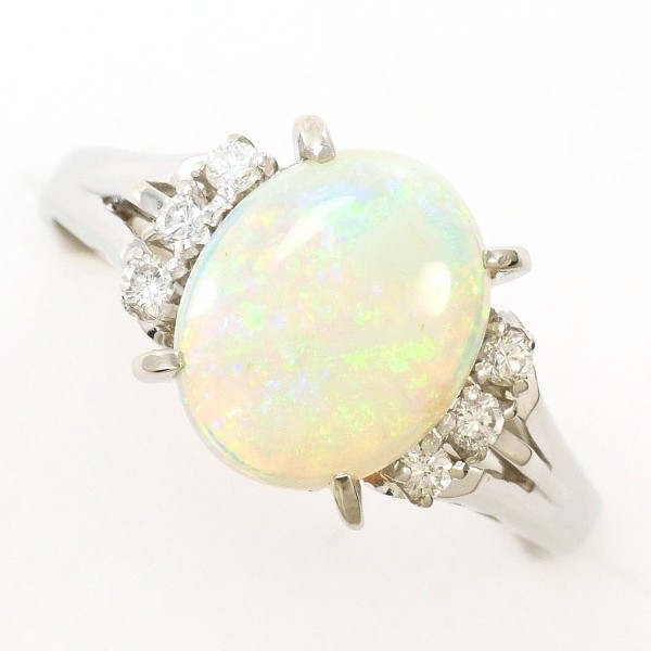 PT900 リング 指輪 15号 オパール ダイヤ 0.11 総重量約4.6g 中古 美品 送料無料 | |