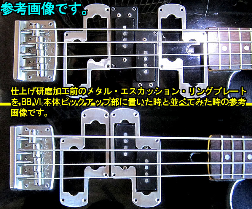 ■ YAMAHA BB (1980年代前後のBroad Bass/ブロードベース) 向け共通パーツ 特殊デザイン仕様 メタル・エスカッション・リングプレート(ダイレクト・マウント・ピックアップ設置用、レギュラー/レフティ兼用)、 ステンレス製を1枚出品です。