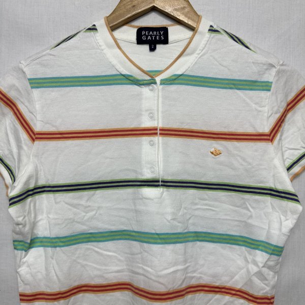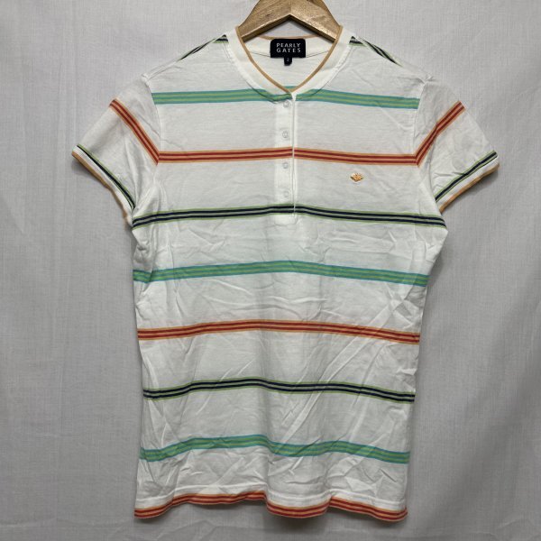 〇PEARLY GATES パーリーゲイツ ショート スリーブ 半袖 ヘンリー ネック T シャツ GOLF ゴルフ スポーツ ウエア 2(L) 白 ホワイト