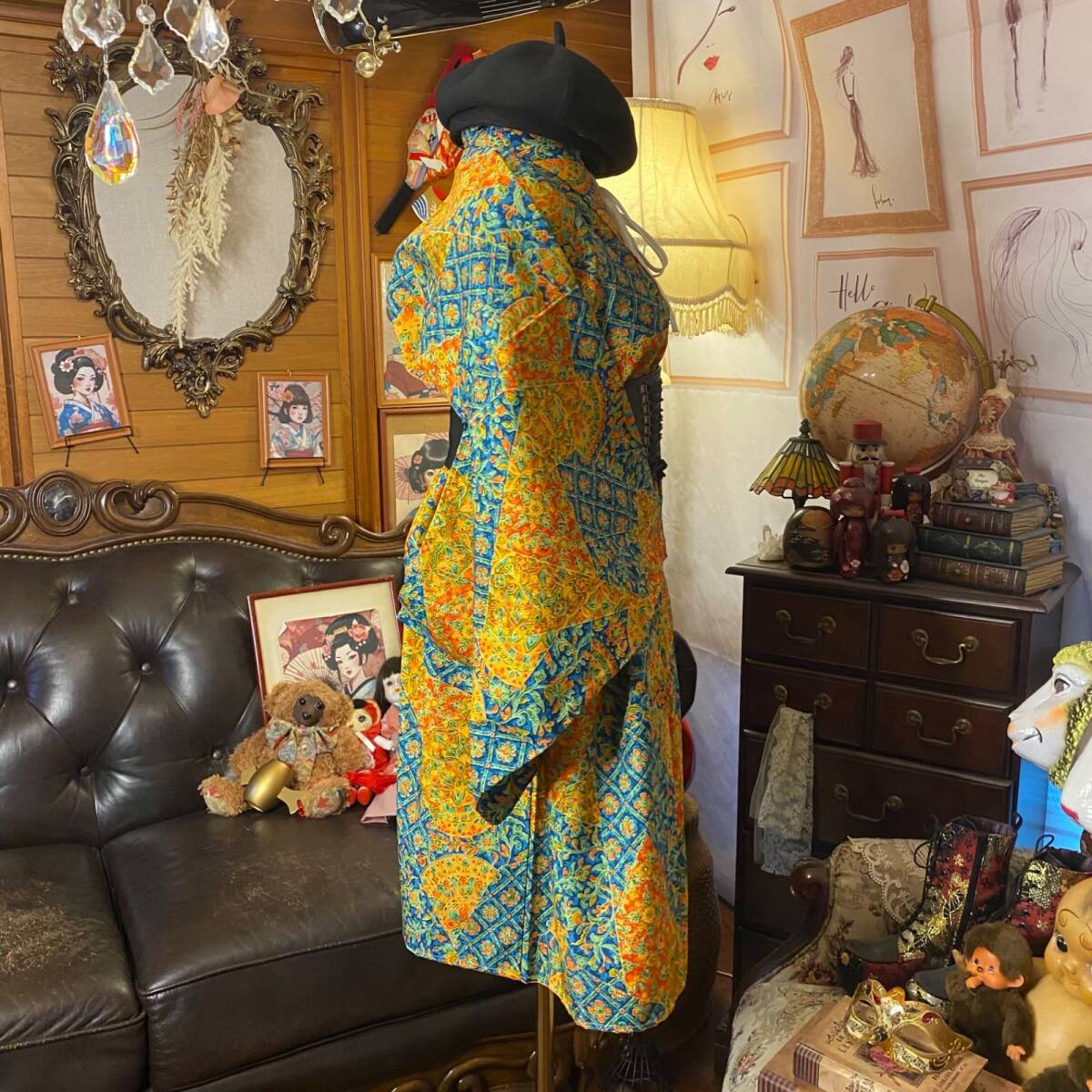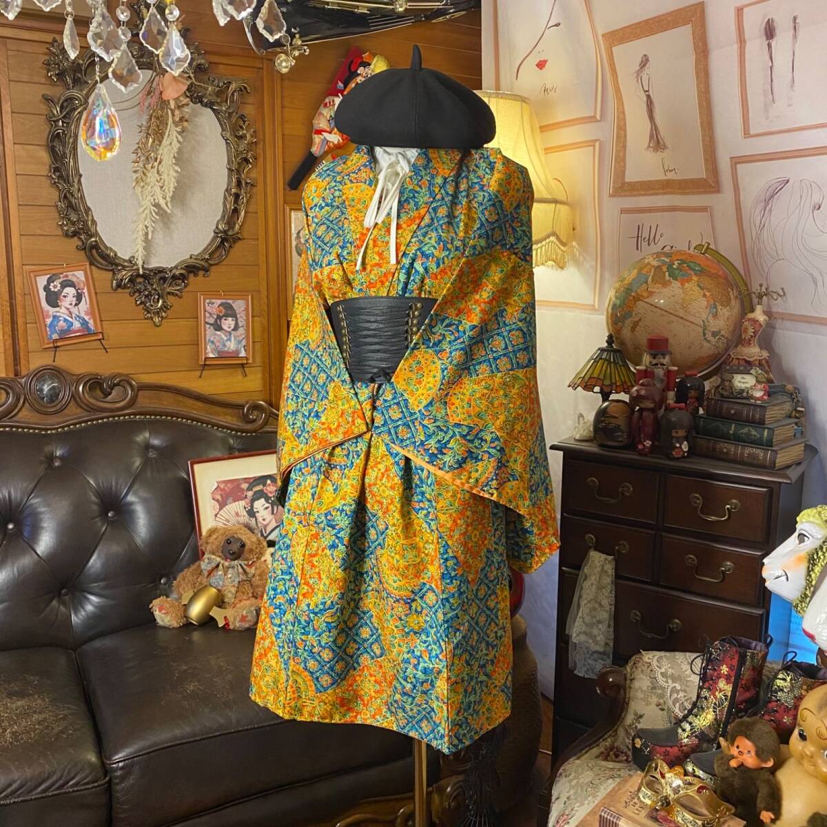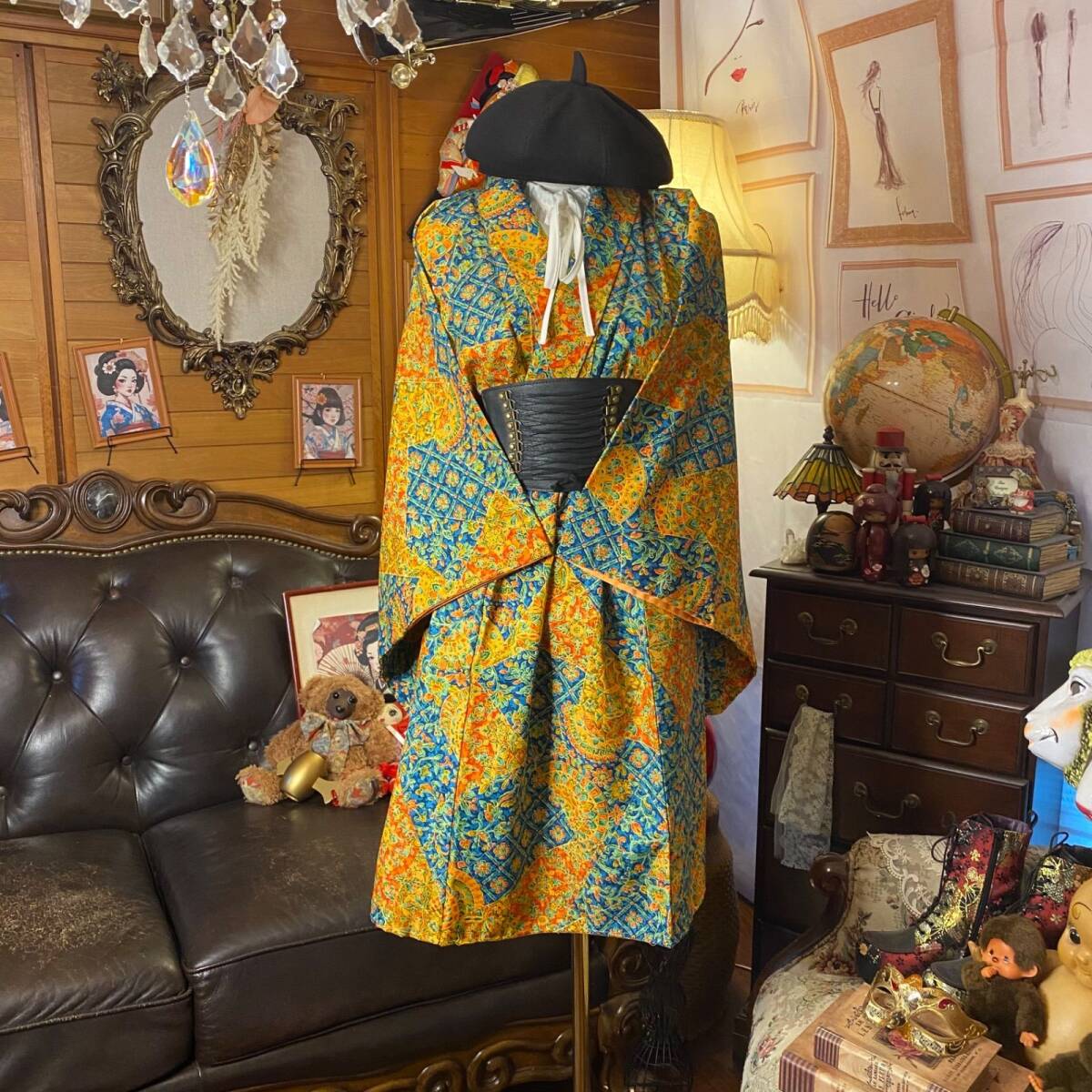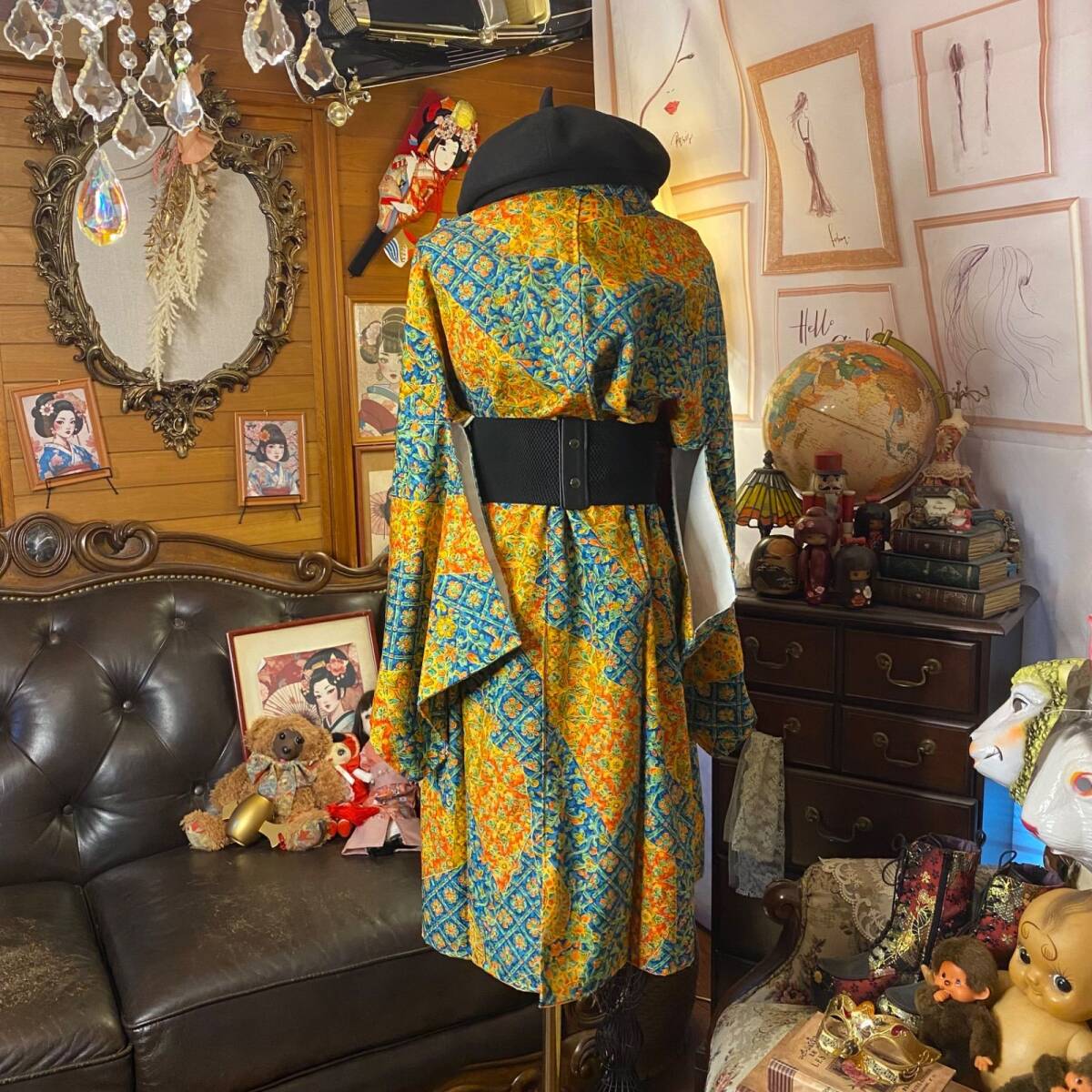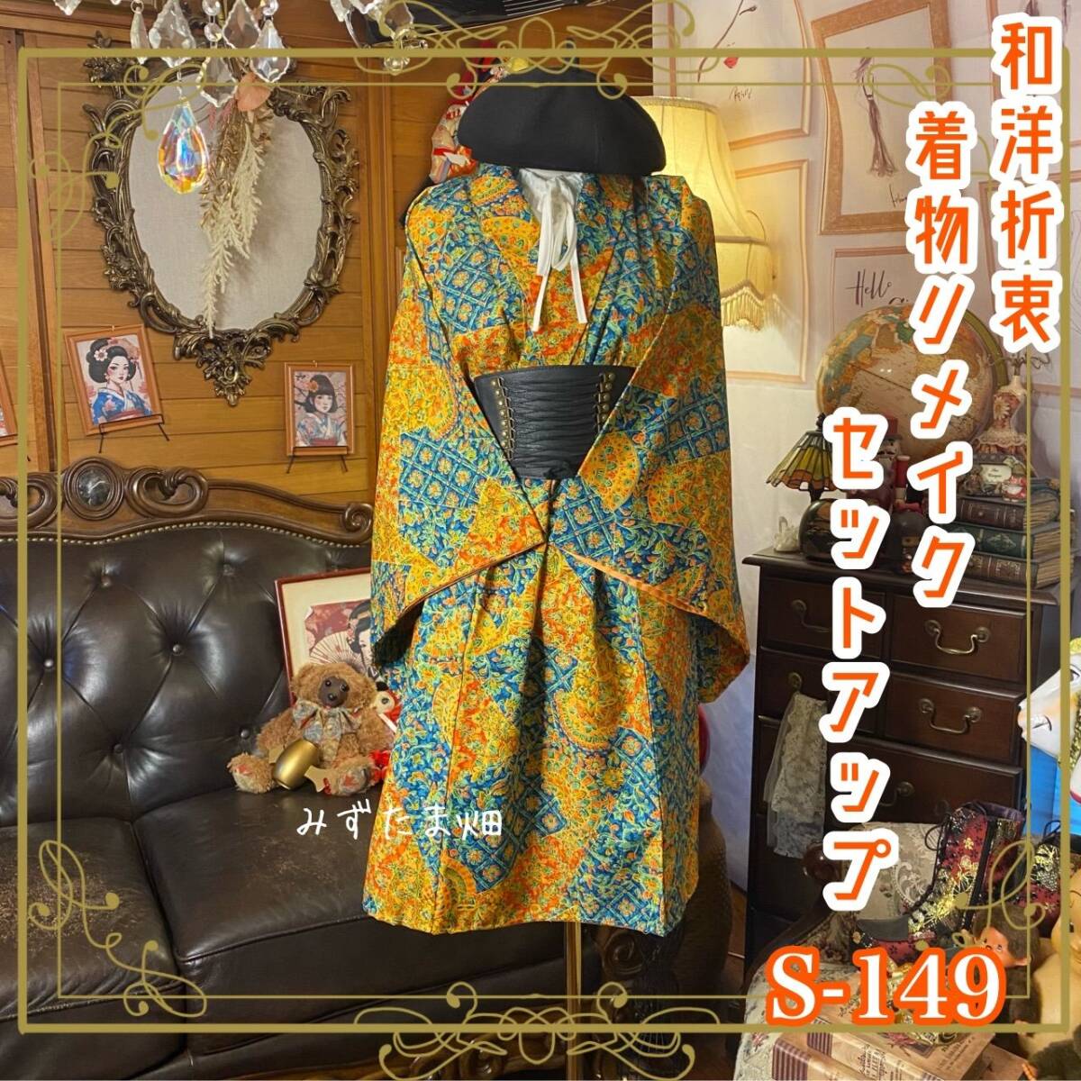 ①古着リメイク: 着物 リメイク セットアップ 羽織り