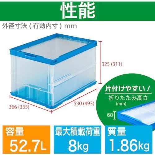 サイズ: 50L_単品_ブルー_フタなし トラスコ中山(TRUSCO) 薄型折りたたみコンテナ 収納ケース 収納ボックス 透明 50L TR-O50B-TM