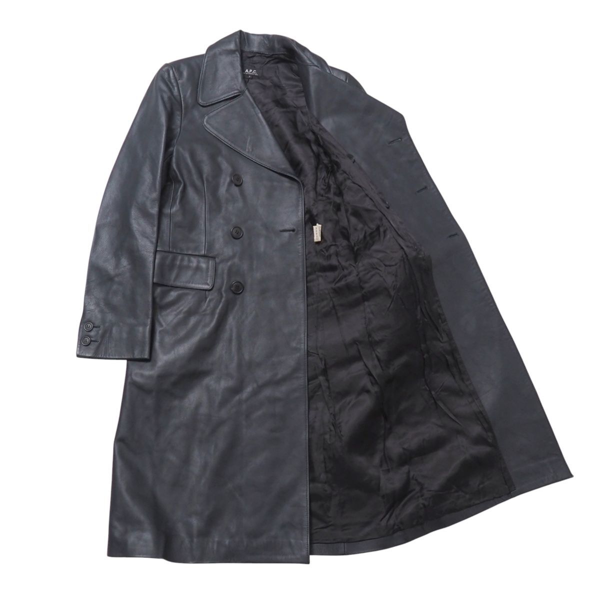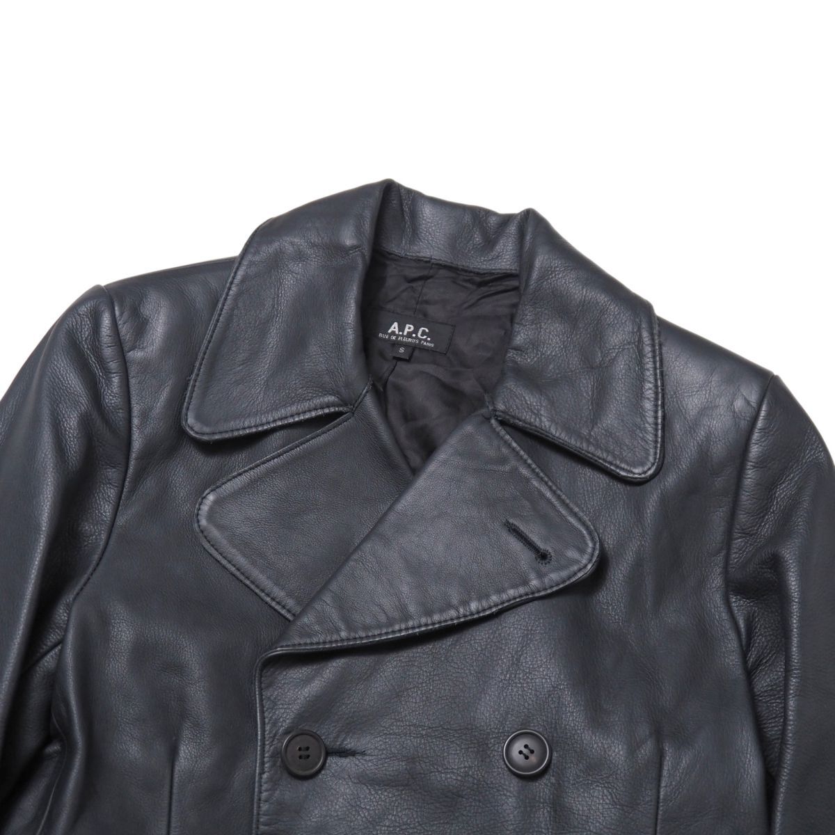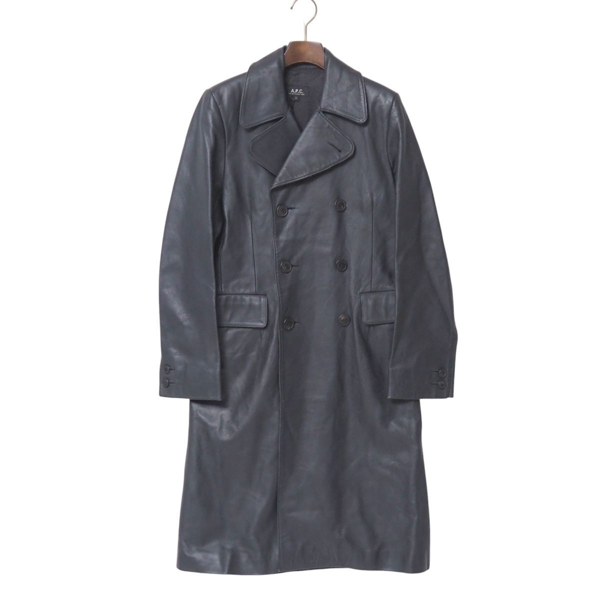 TJ4646//90sヴィンテージ/HIVER 1999*アーペーセー/A.P.C.*メンズS/レザーチェスターコート/ダブルブレスト/チェスターフィールドコート/紺/ネイビー | |||