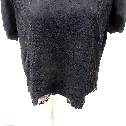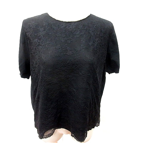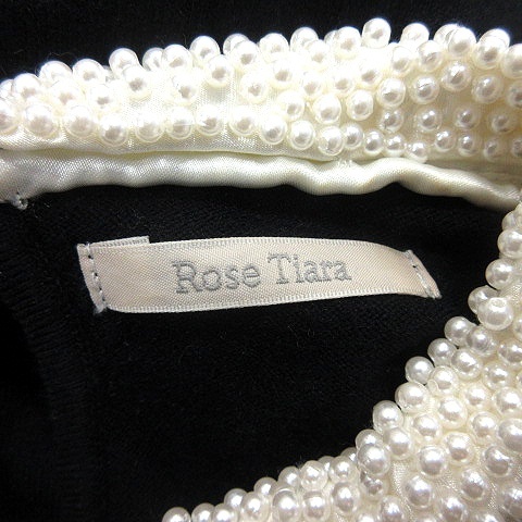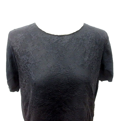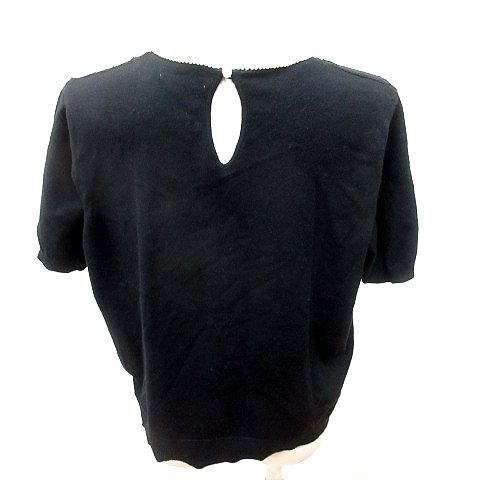 ローズティアラ Rose Tiara ニット カットソー Uネック 半袖 総柄 46 黒 ブラック /RT レディース