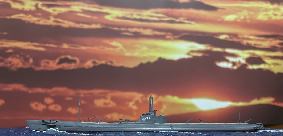 1/700スケールの潜水艦イ-16の完成品になります。