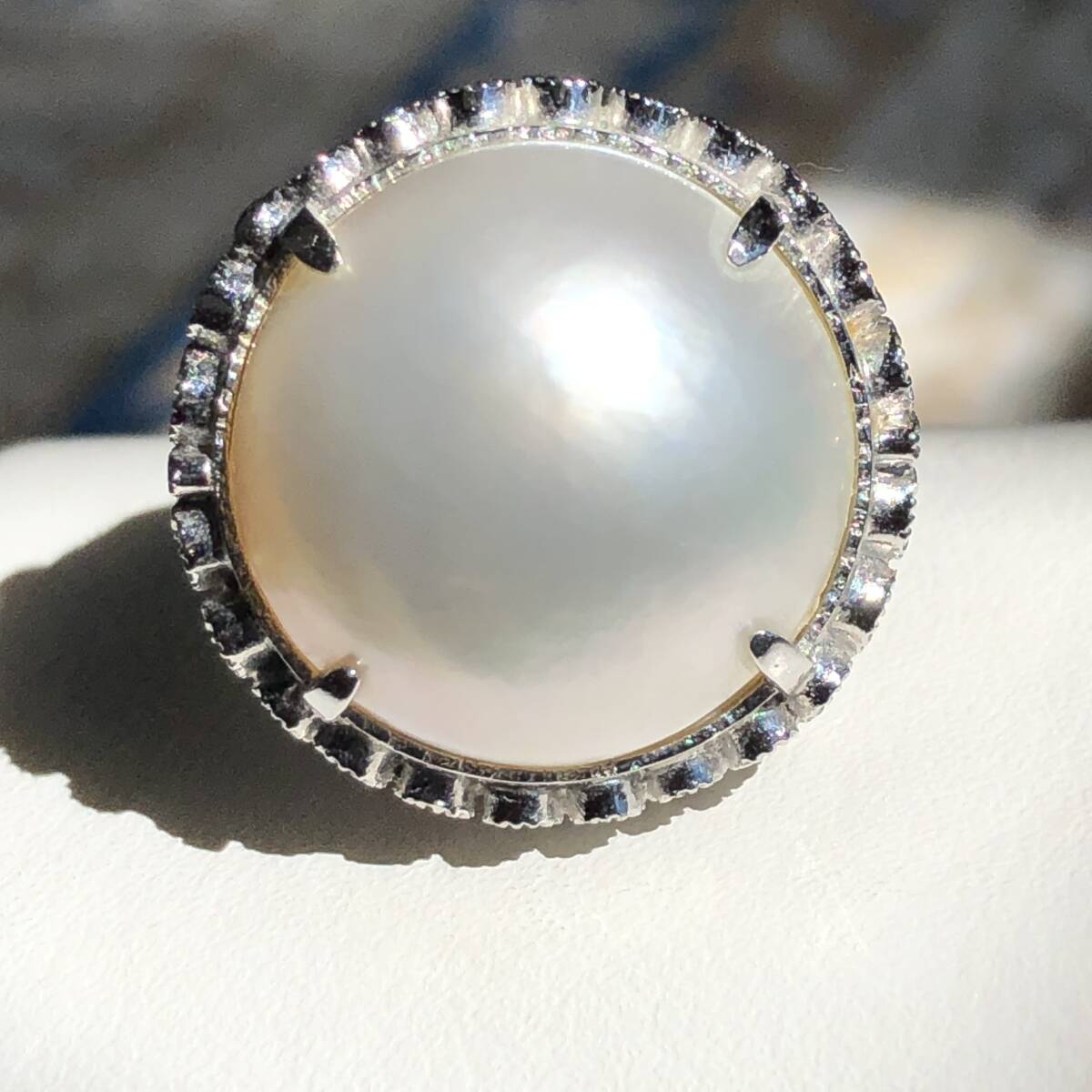センターに飾っているのは、特大サイズのの天然マベ真珠です。