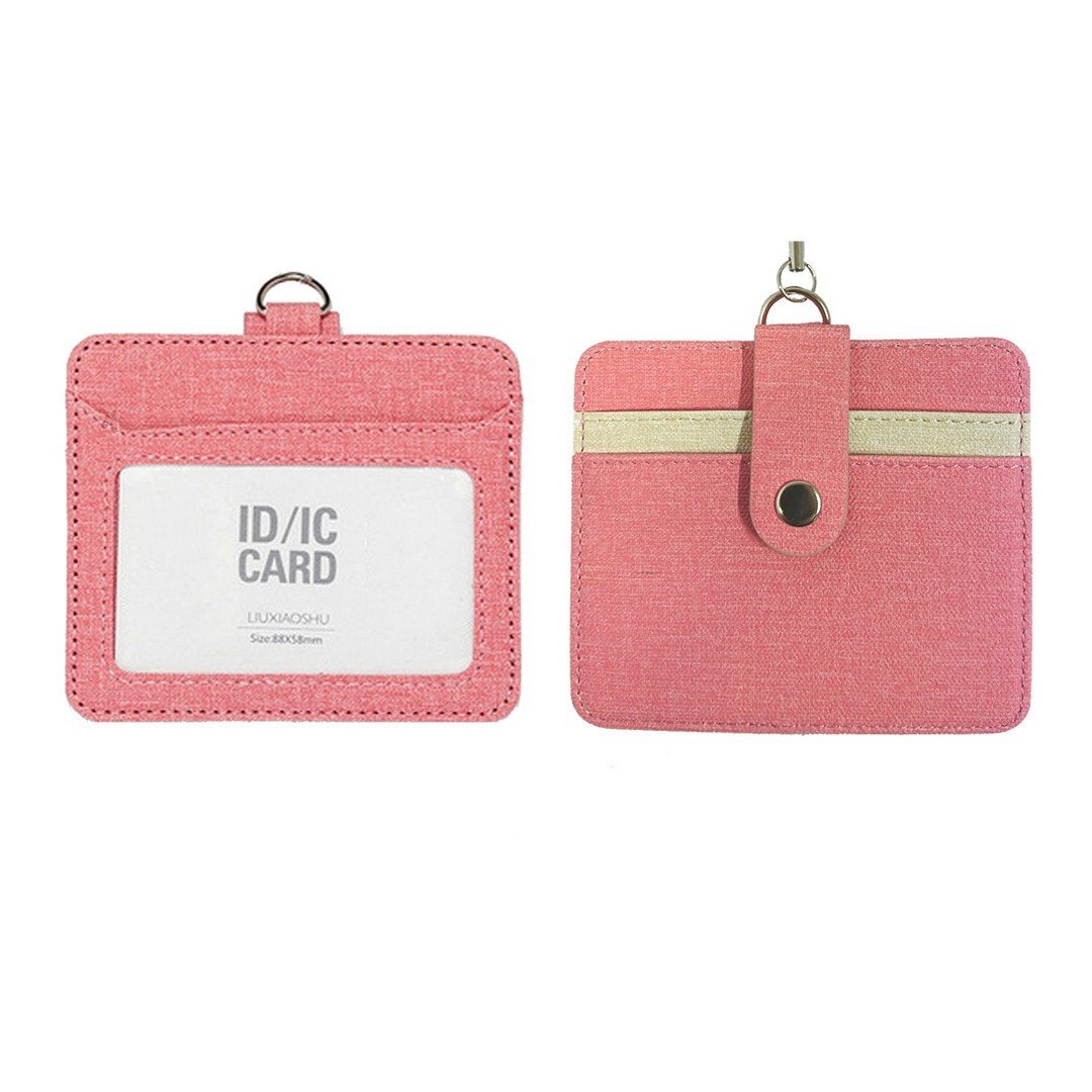 【C10619】IDカードホルダー ピンク 横型 リール付き カードケース パスケース ネックストラップ 定期券 ポケット 伸びる 社員証