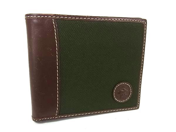 HUNTING WORLD ハンティングワールド キャンバス×レザー 二つ折り 財布 ウォレット 札入れ カード入れ カーキ系×ブラウン系 DK6419