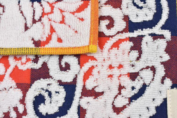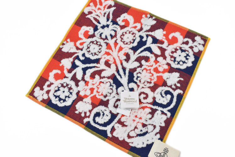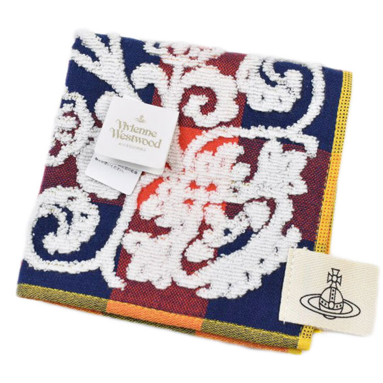 商品説明 | 女性 婦人 タオルハンカチ 1枚 綿100 サイズ 約25.5×25.5 (cm) 色:ネイビー × オレンジ × ホワイト ◆メール便 OK |